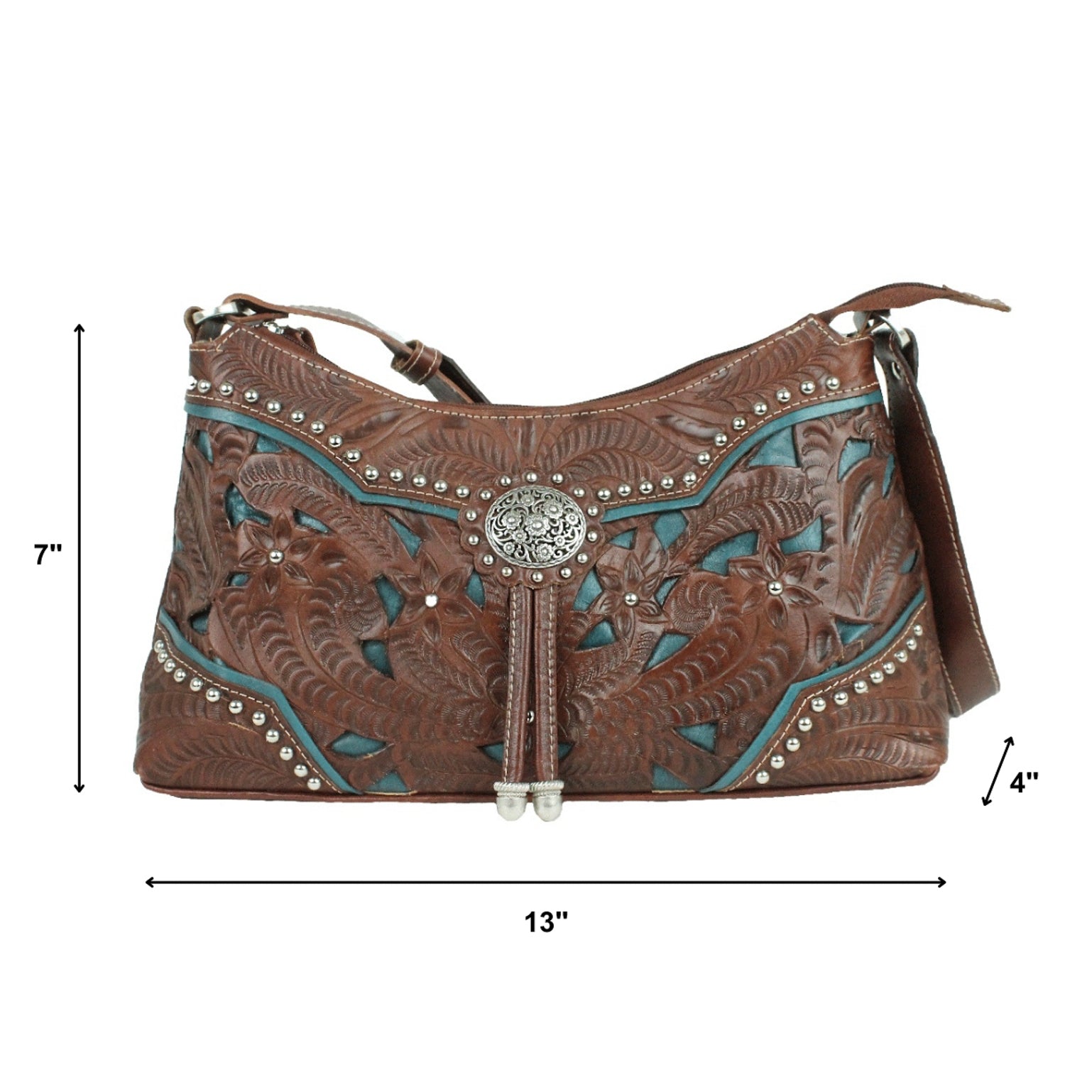 American West Womens Lady Lace Hobo Medium Brown Leather Handbag Bag