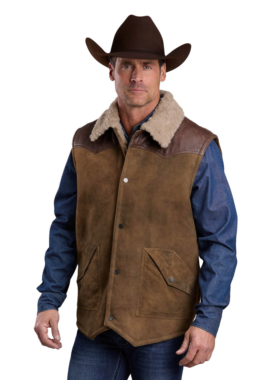 Stetson Mens Contrast Yoke Chocolate/Tan Suede Leather Vest