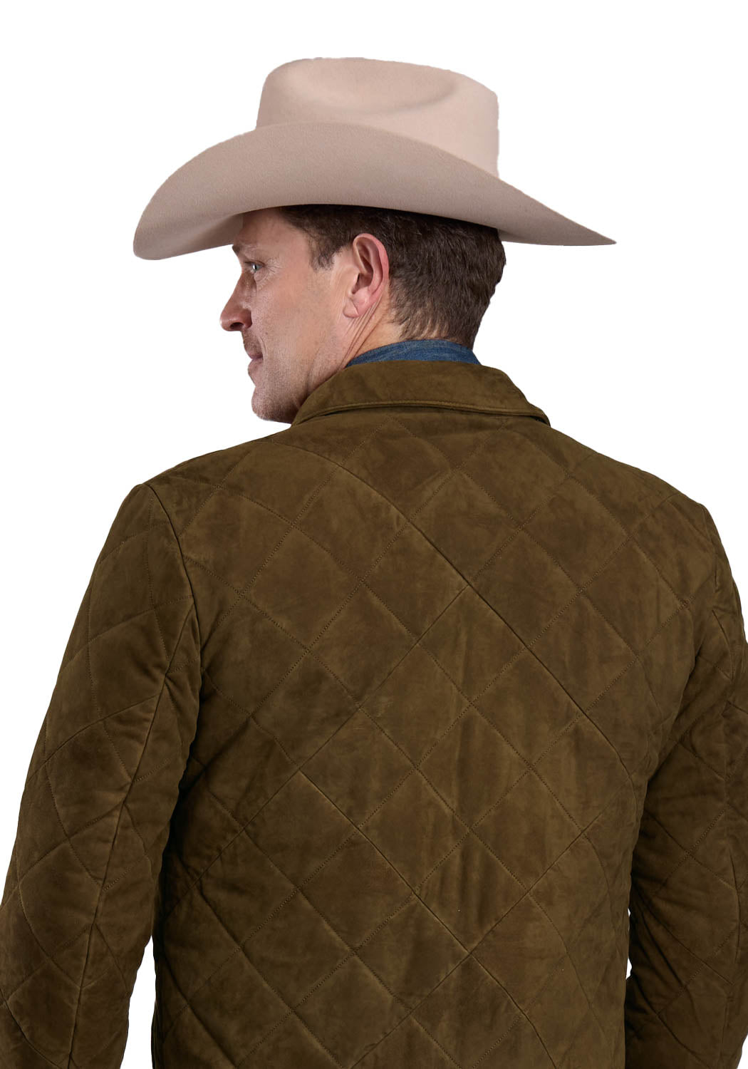 Stetson Mens Diamond Quilted Brown Suede Leather Jacket