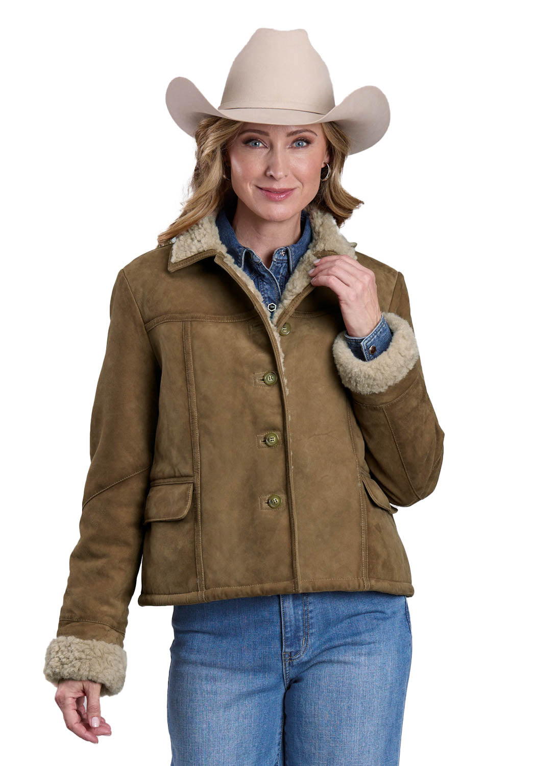 Stetson Womens Faux Shearling Brown Suede Leather Jacket