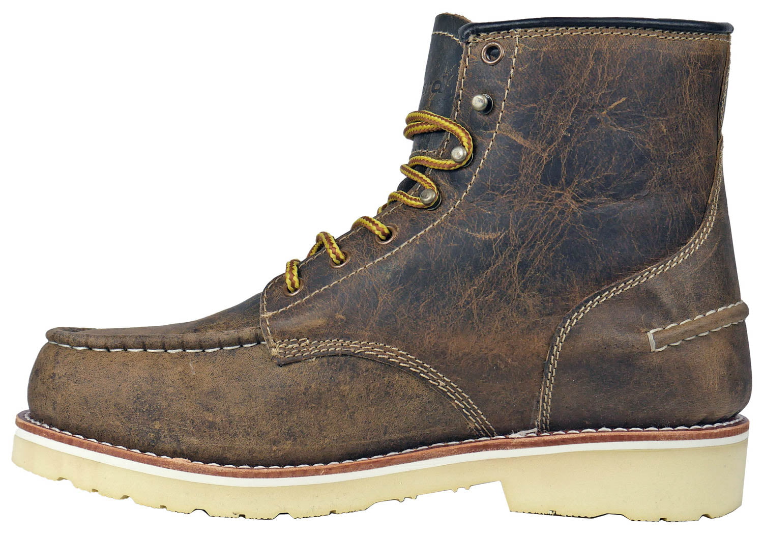 • Distressed leather This handcrafted premium leather boot features a classic square toe with a rugged Old Glory flag stitched into the shaft. Designed for the modern cowboy, this boot offers a blend of style, durability, and American pride, perfect for any occasion. Work hard and stay protected with these work boots.