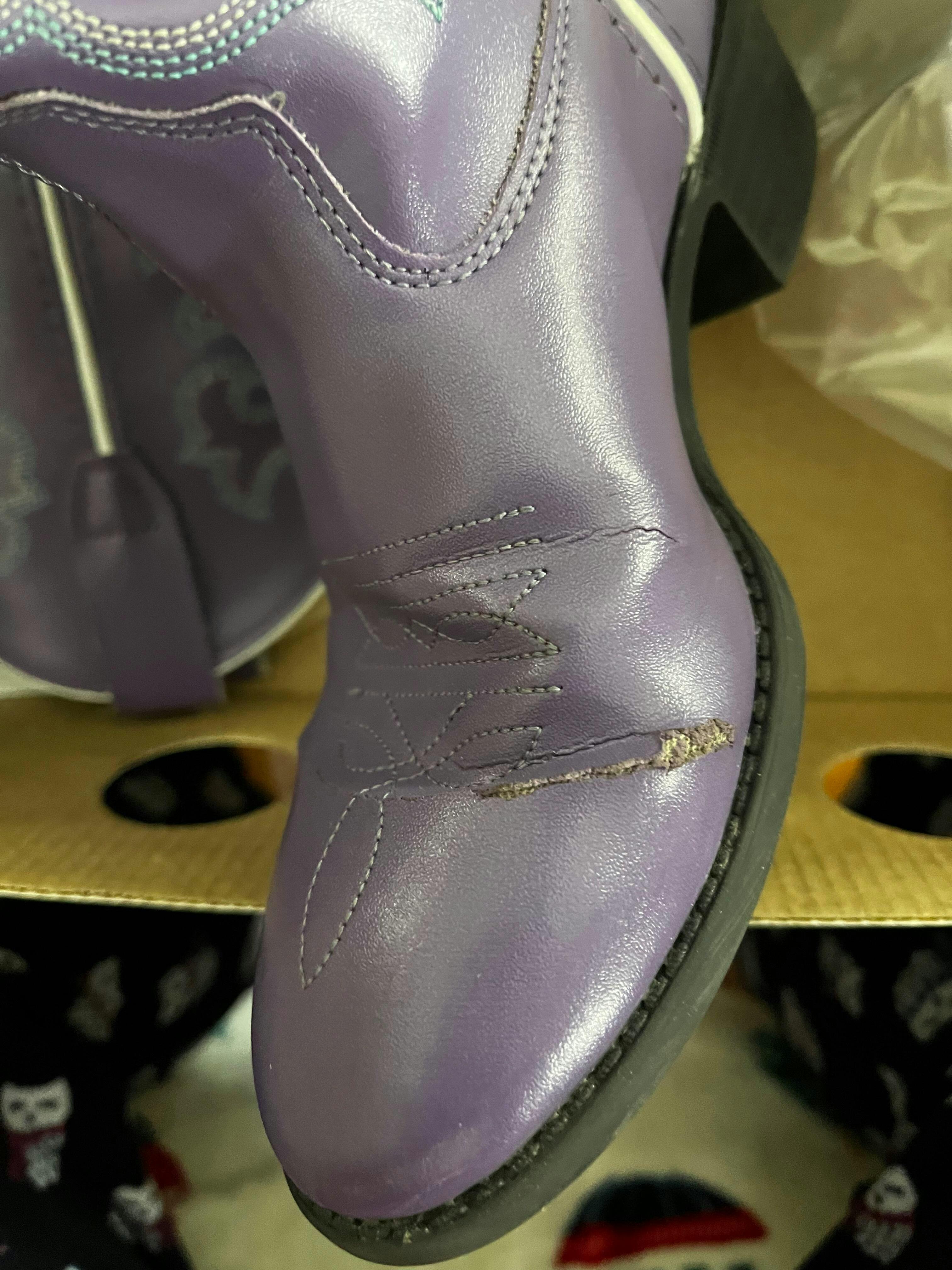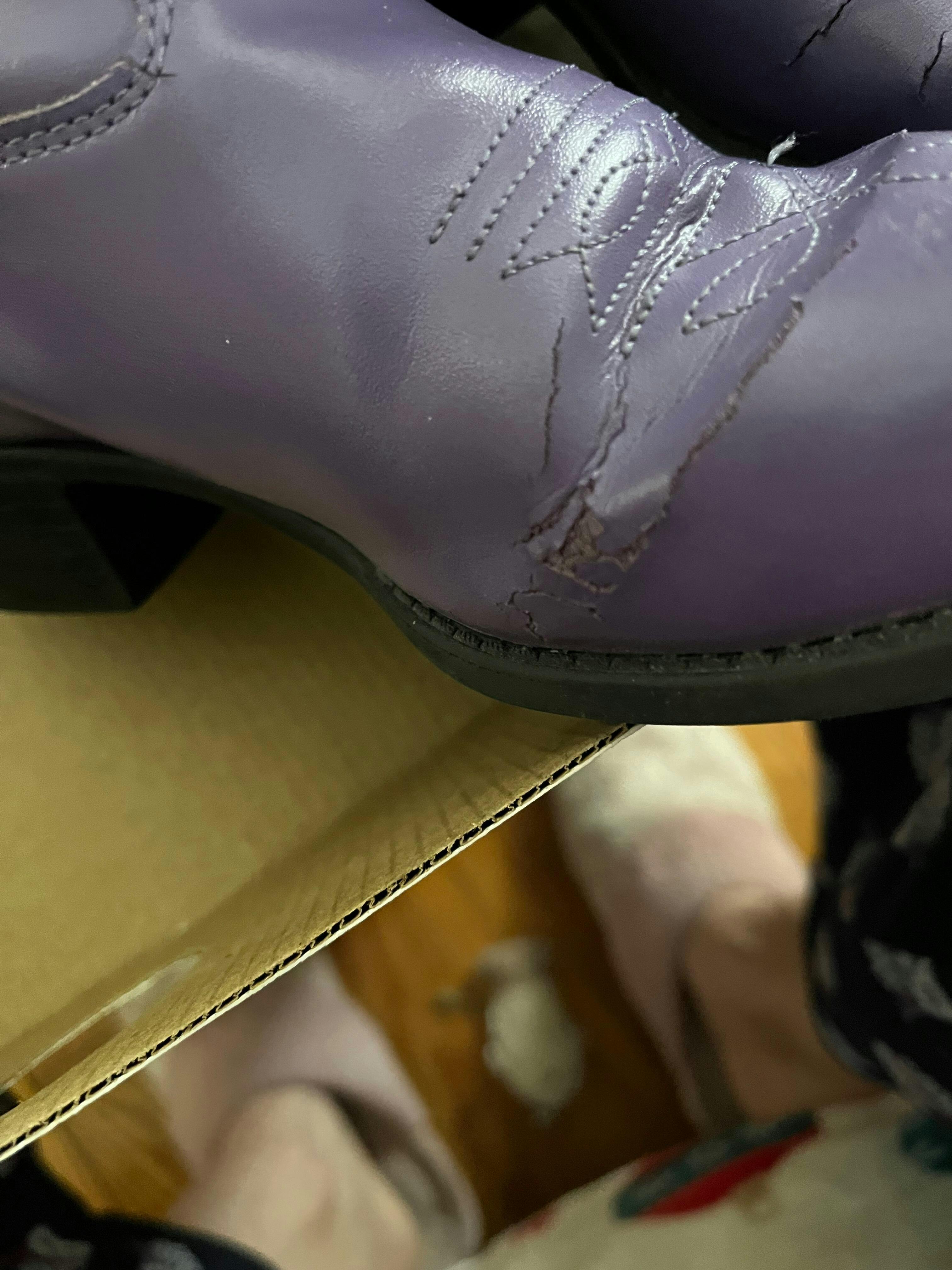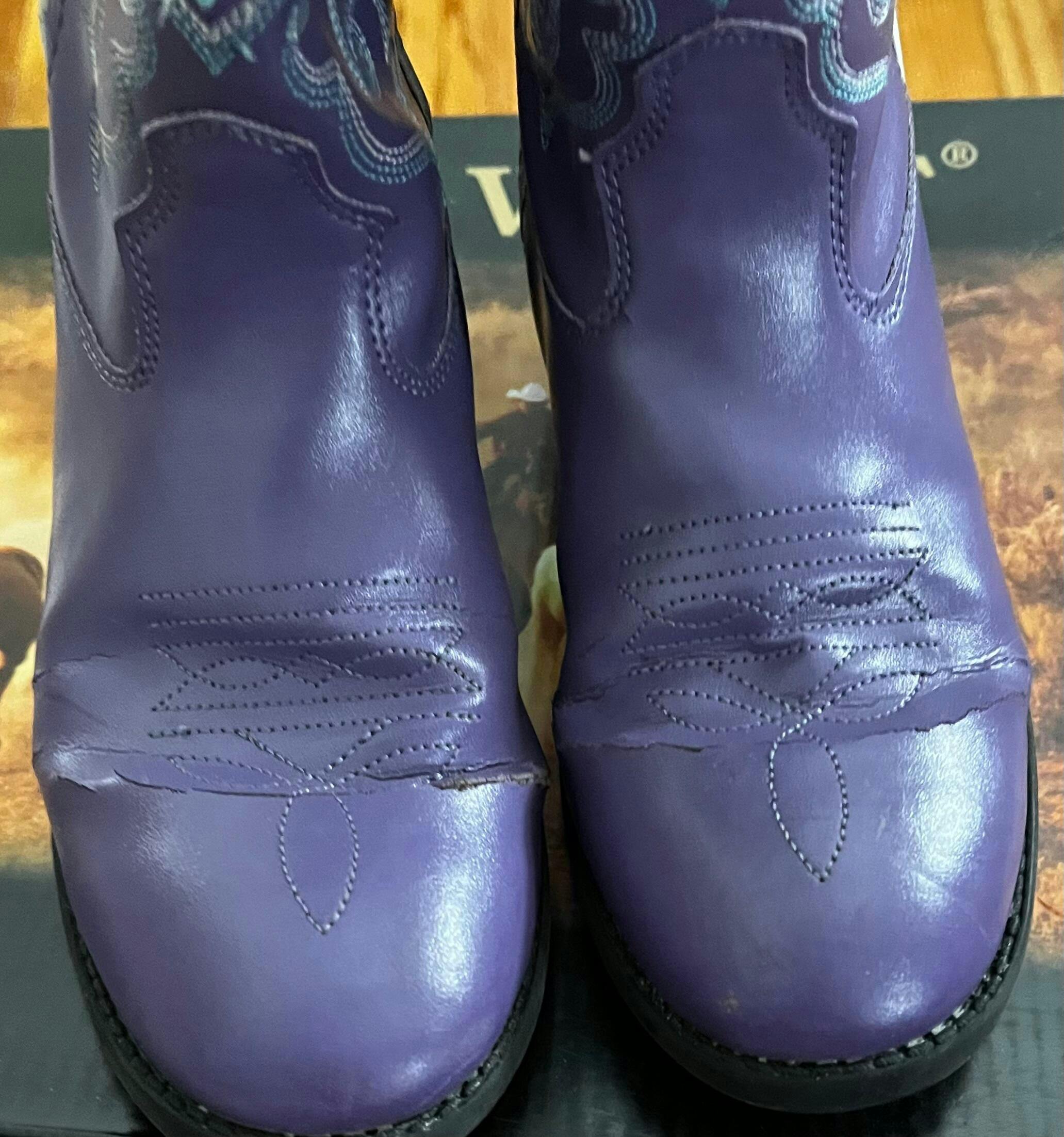 • All-over Leatherette These authentic western faux leather purple girls cowboy boots from Old West feature a all-over leatherette, 4-row fancy stitch, and pull tabs. Constructed from high quality leather and man-made materials, these boots are made to last. If you?re looking to add some western flare to your wardrobe, these functional and stylish boots are a perfect choice.