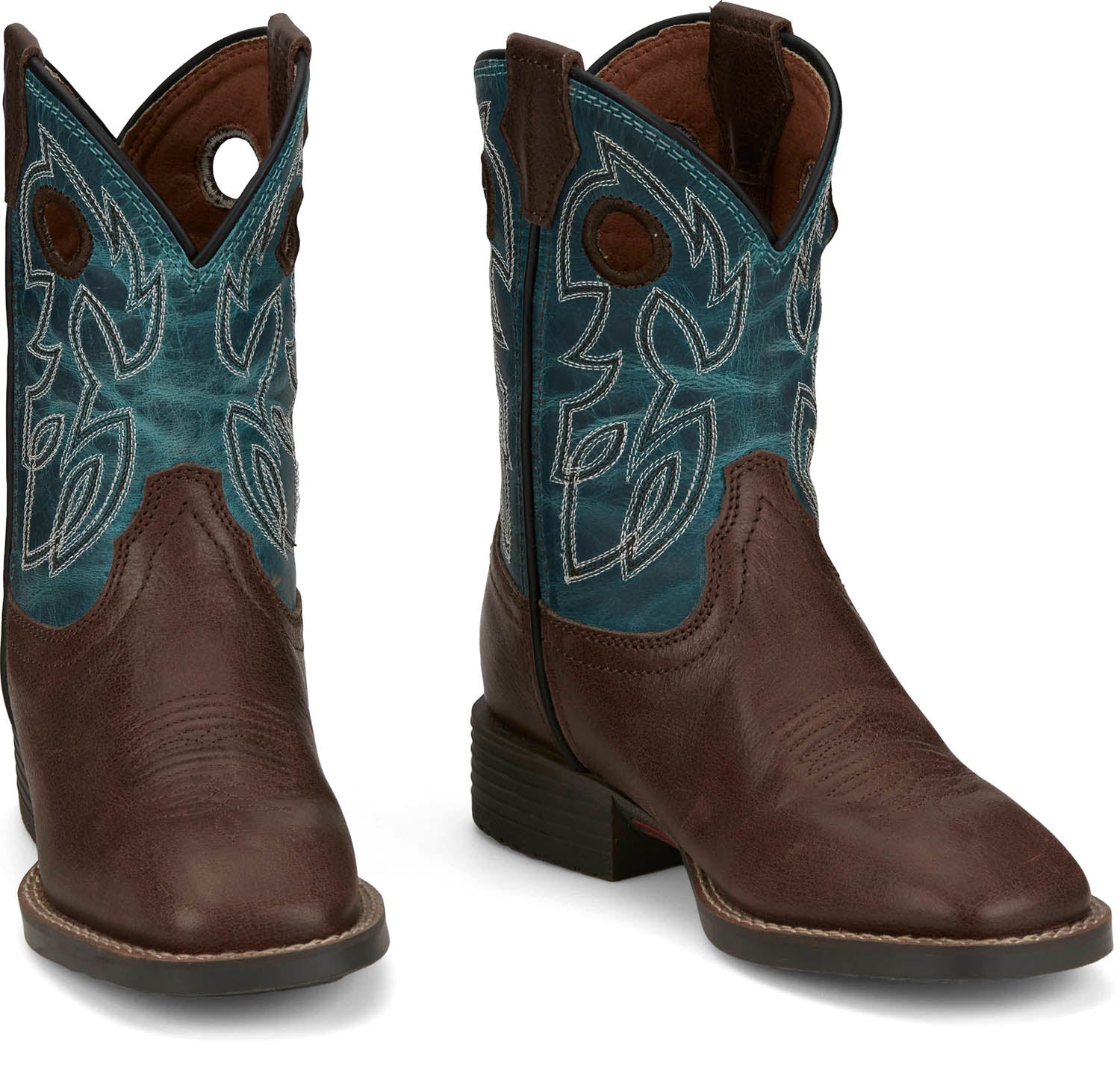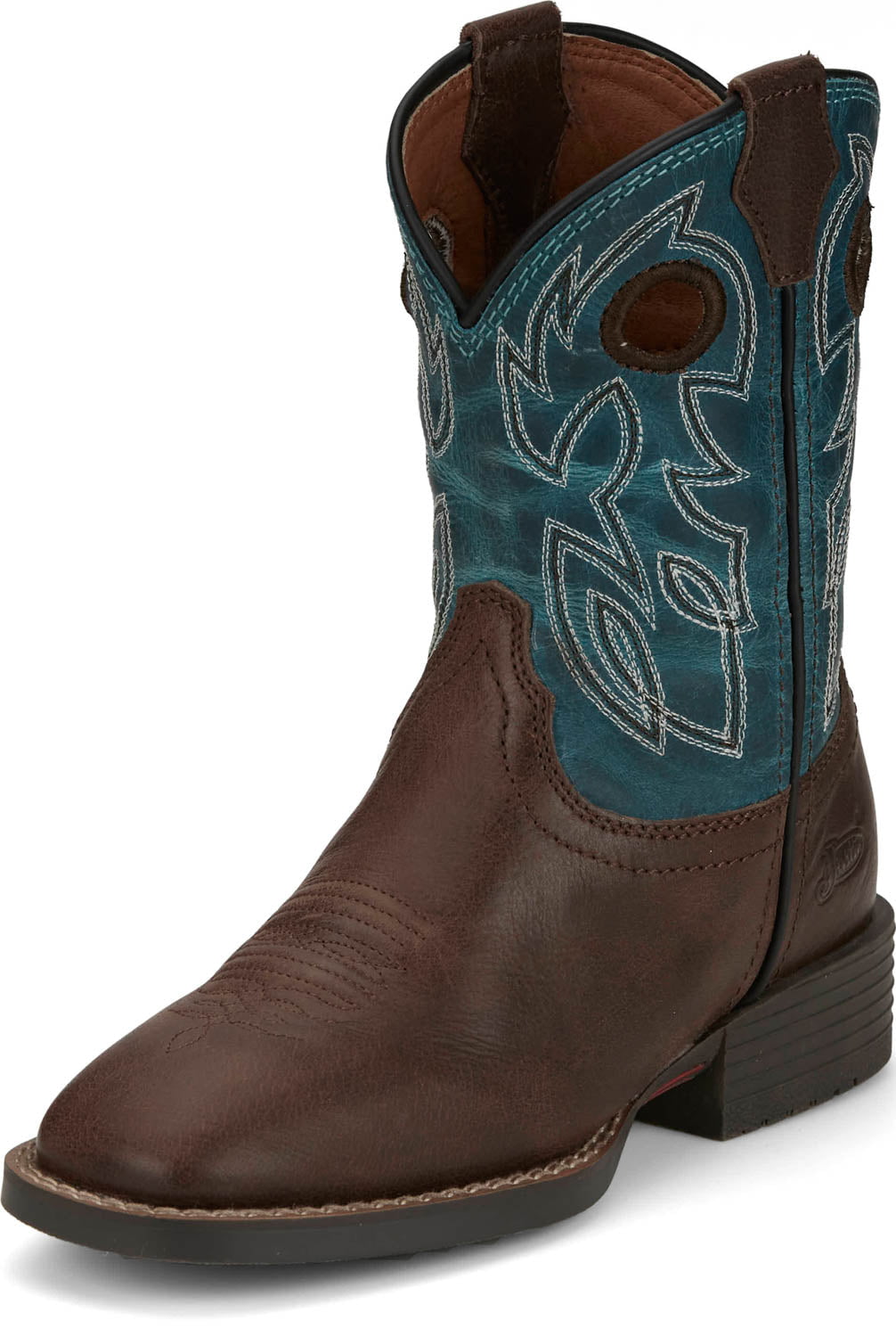 Justin Kids Unisex Bowline Junior Walnut/Blue Leather Cowboy Boots