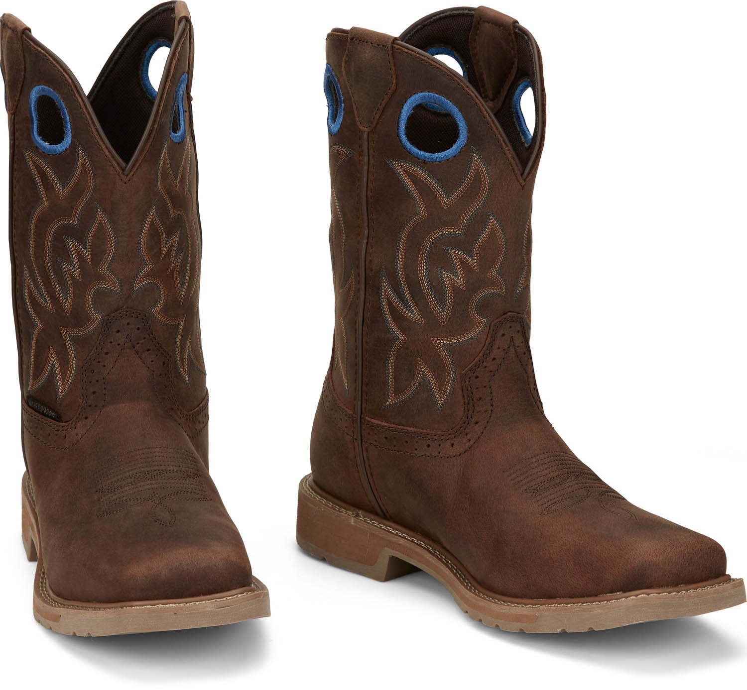 Justin Mens All Around 11in Waterproof Walnut Leather Work Boots