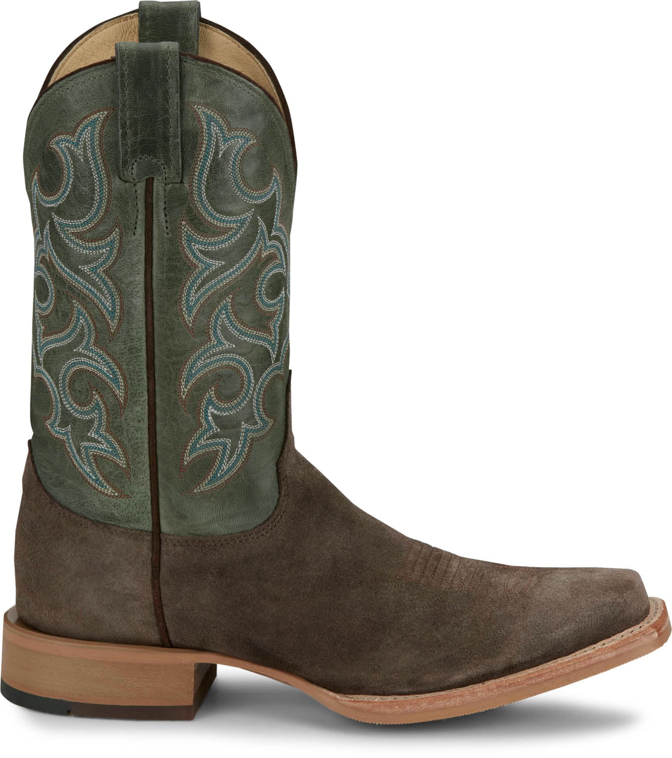 Justin Mens Fergus 11in Roughout Chocolate Leather Bent Rail Cowboy Bo – The Western Company