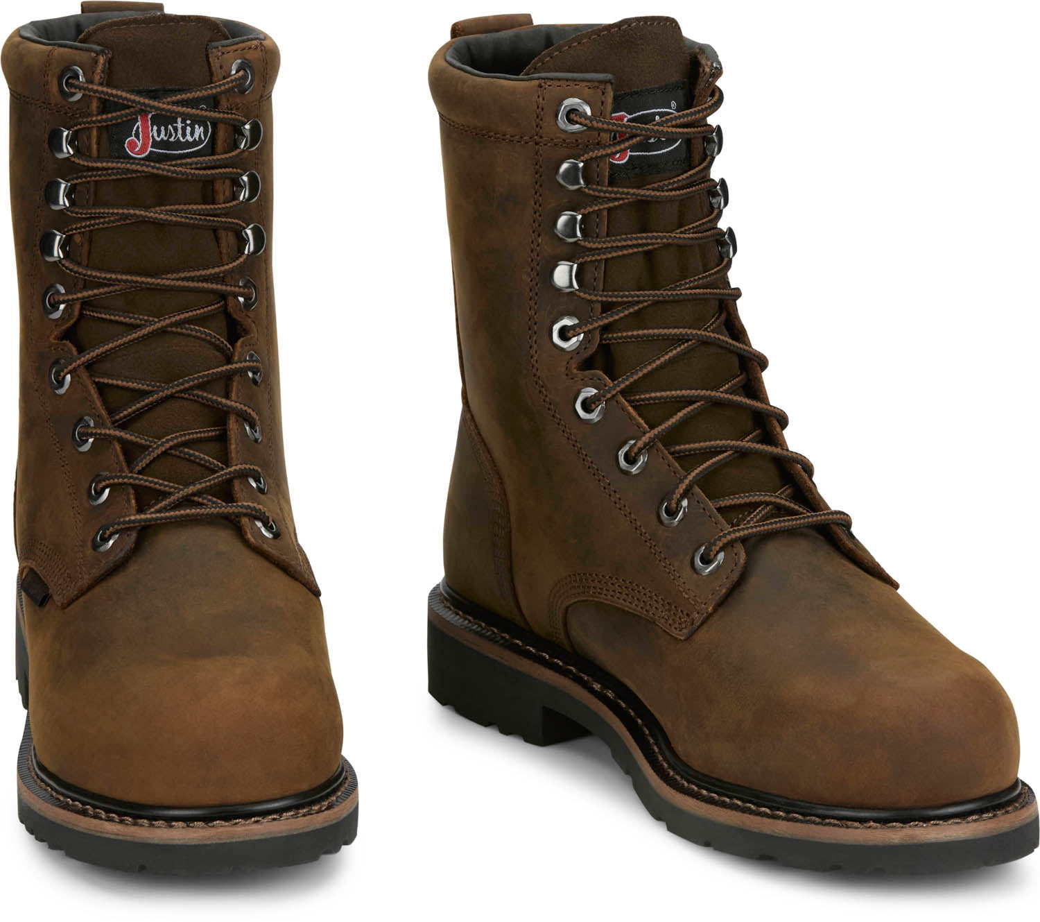 Justin Mens Pulley 8in MetGuard WP CT Whiskey Leather Work Boots – The Western Company