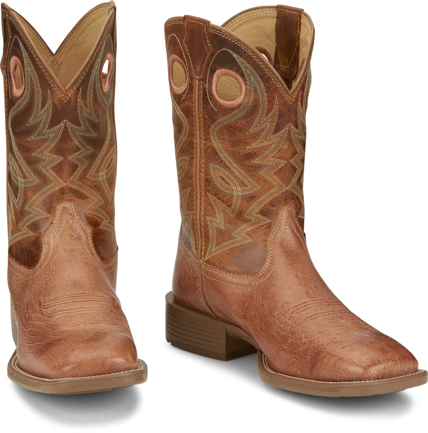 Justin Mens Roswell 11in Cognac Leather Cowboy Boots