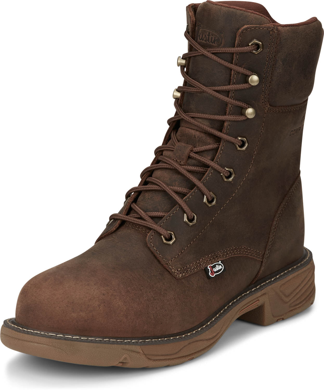 Justin Mens Rush 8in WP Comp Toe Pecan Leather Work Boots