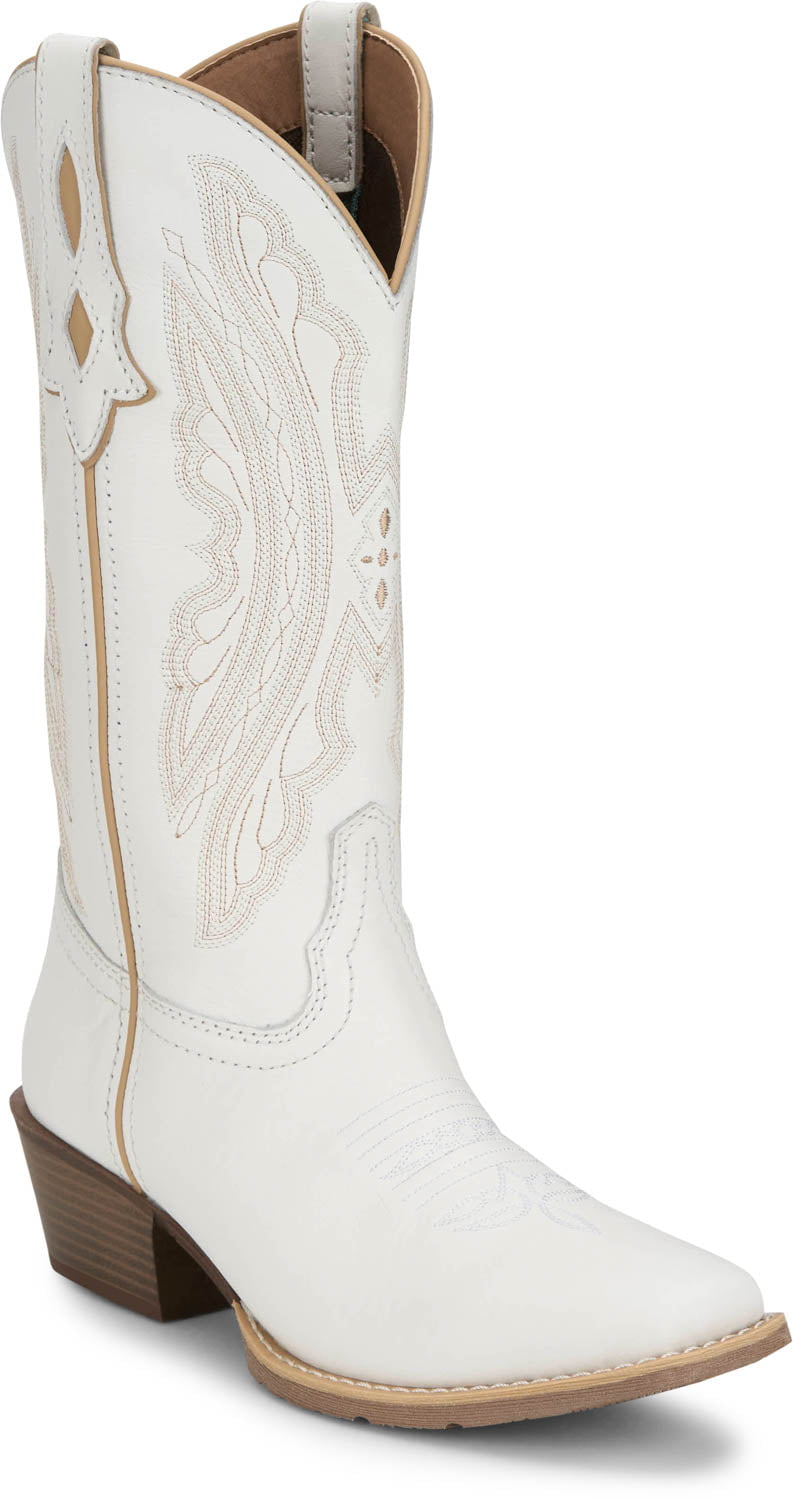 Justin Womens Rae Bright White Leather Cowboy Boots