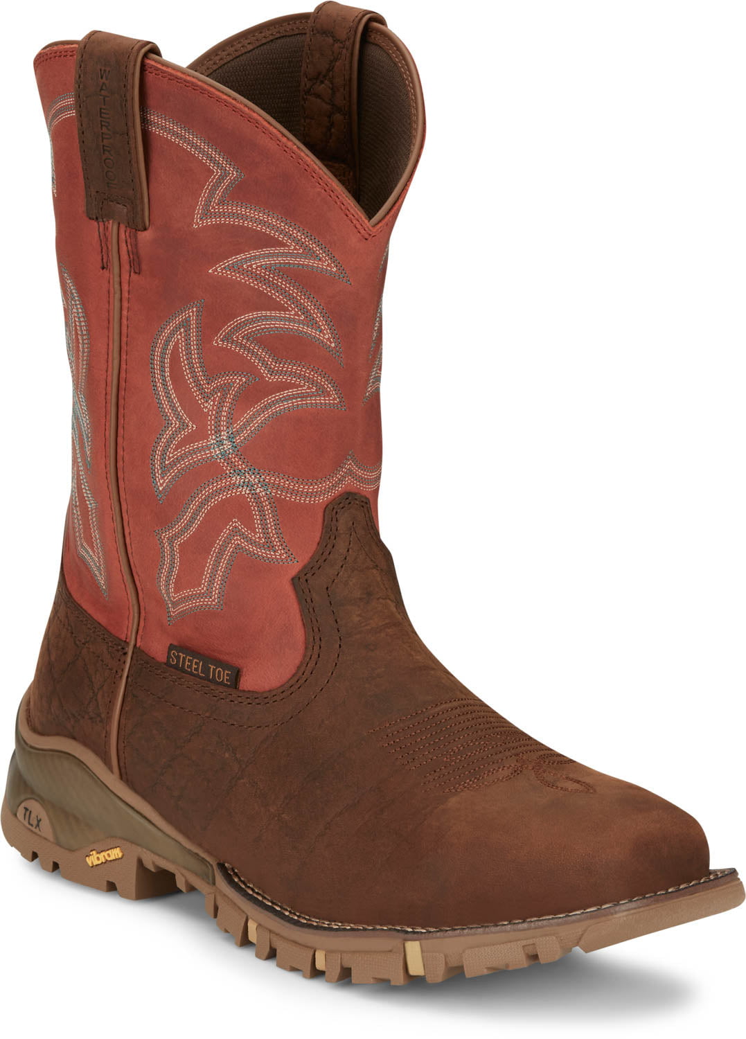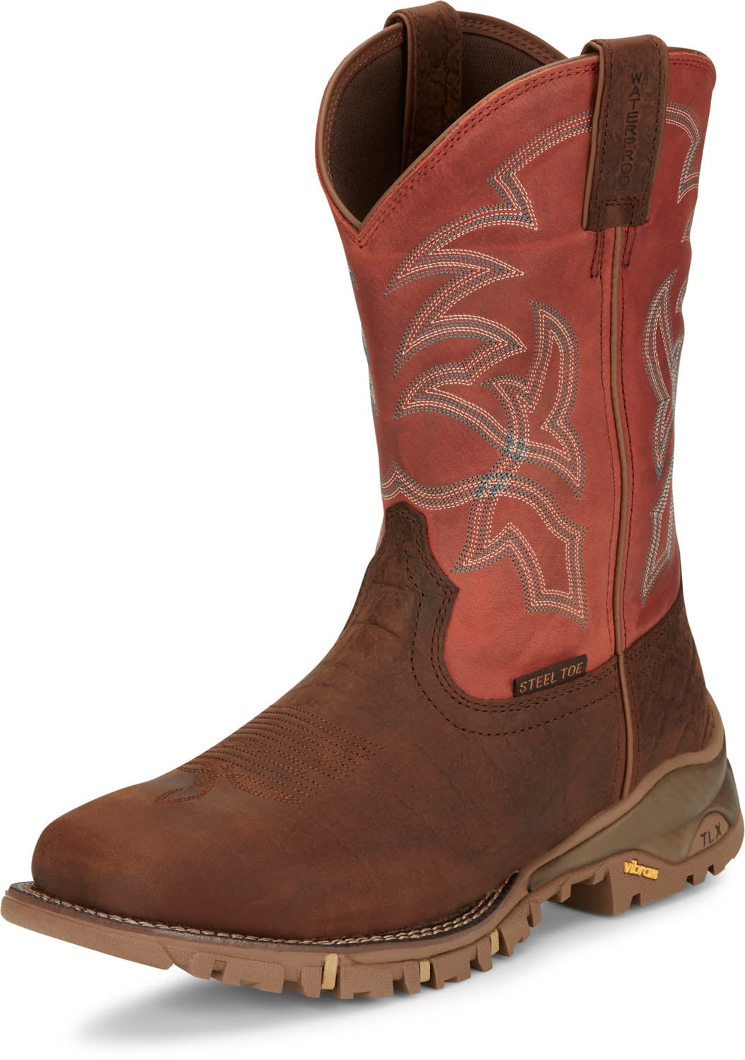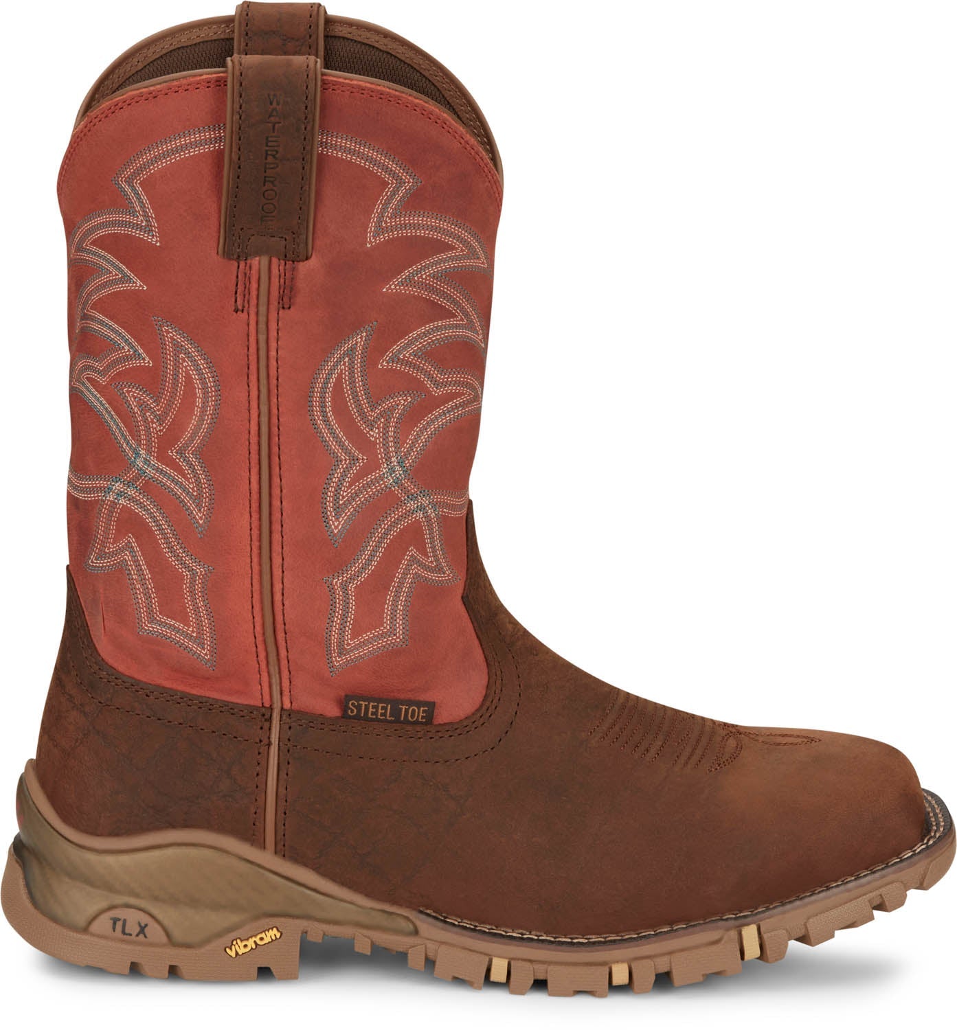 Tony Lama Mens Roustabout 11in WP ST Chestnut Leather Work Boots