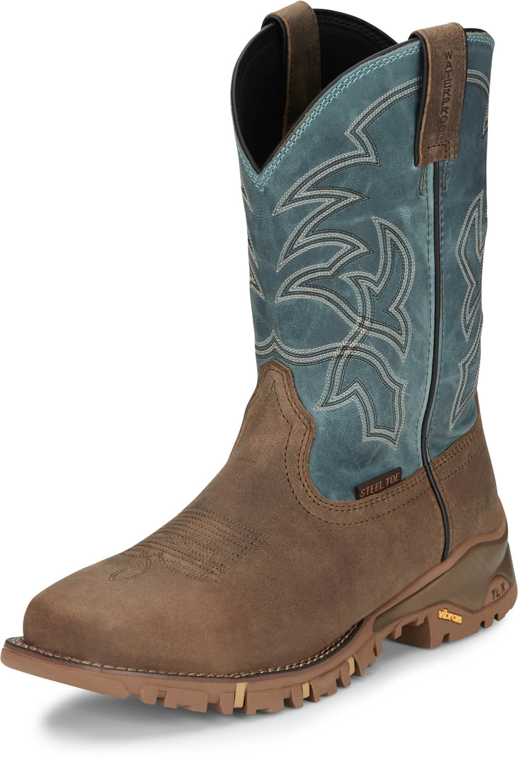 Tony Lama Mens Roustabout 11in WP ST Tan Gaucho Leather Work Boots