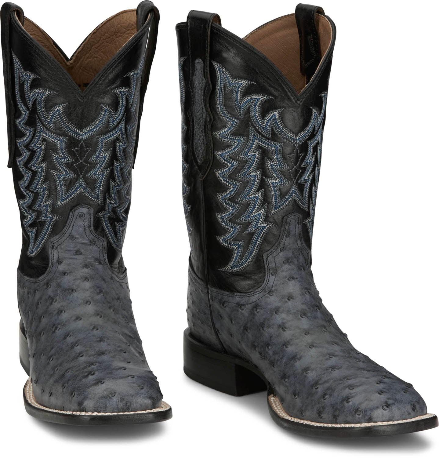 Tony Lama Mens Vale 11in Grey Full Quill Ostrich Cowboy Boots