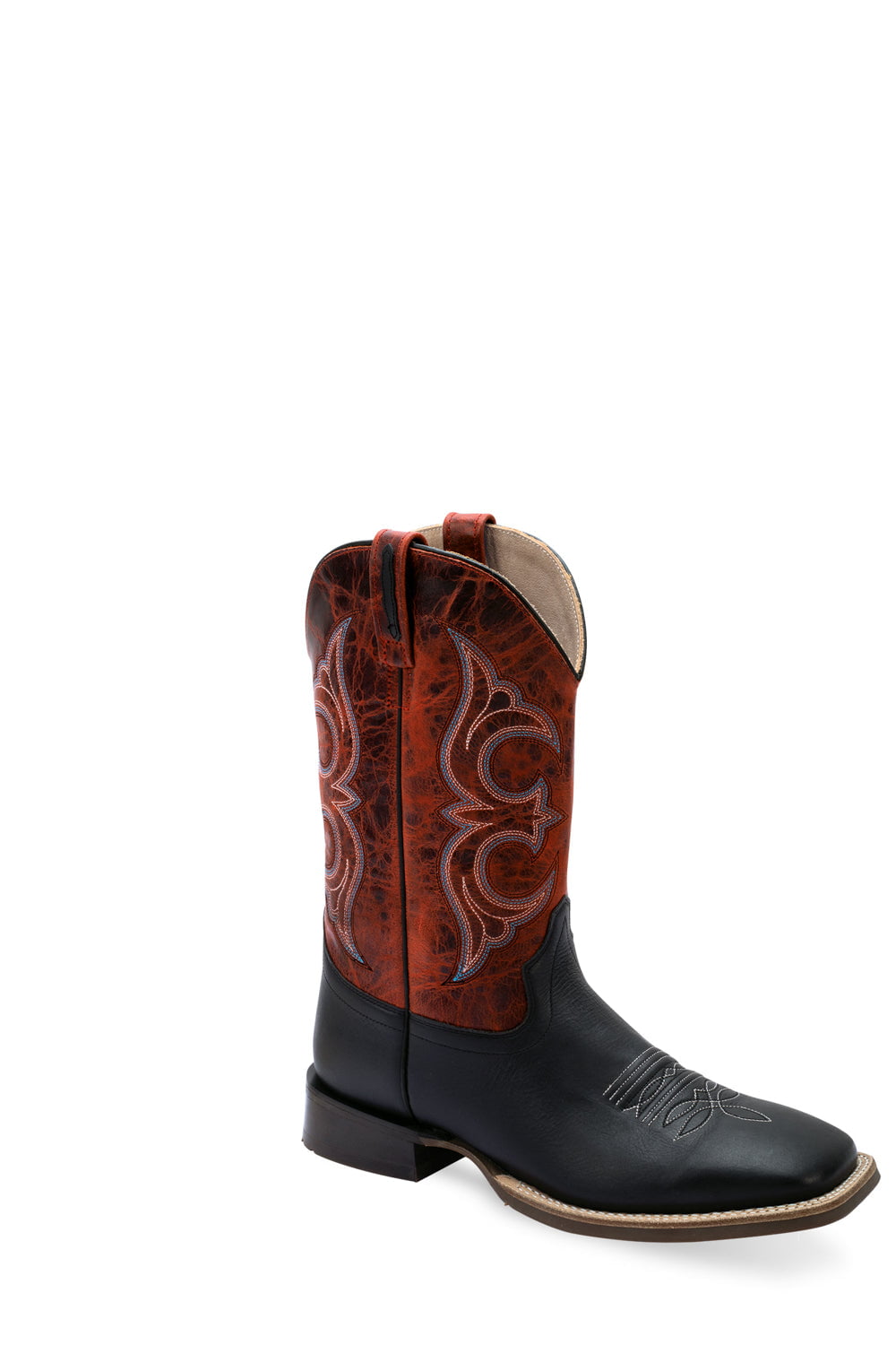 Old West Mens Broad Square Toe Black/Burnt Red Leather Cowboy Boots 11 – The Western Company