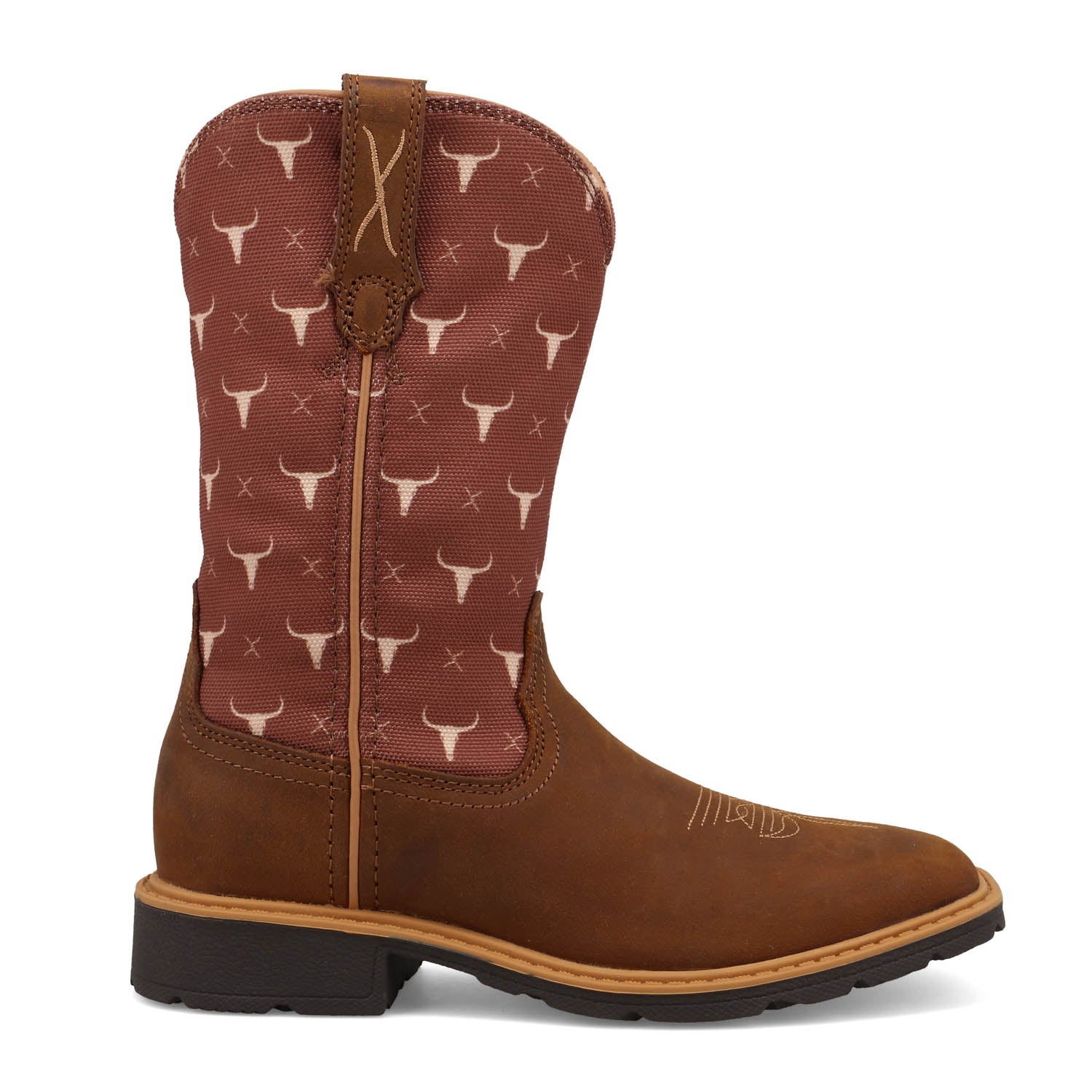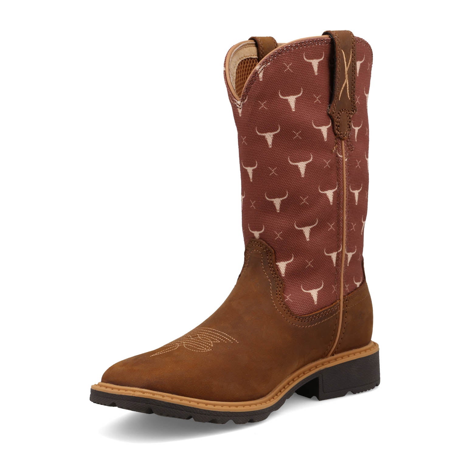 • Leather vamp with Airlite X fabric shaft Always striving, never compromising. Twisted X is dedicated to making better boots and it shows. Outfit your kids in fun western prints without sacrificing durability and comfort in this Cowboy Work boot. A leather vamp and rubber outsole help ensure these boots hold up during chores and play, while the lightweight shaft features breathable Airlite X fabric to them feeling cooler. These boots were made for active youth who want authentic western style that's comfortable enough for any adventure. Work hard and stay protected with these work boots.