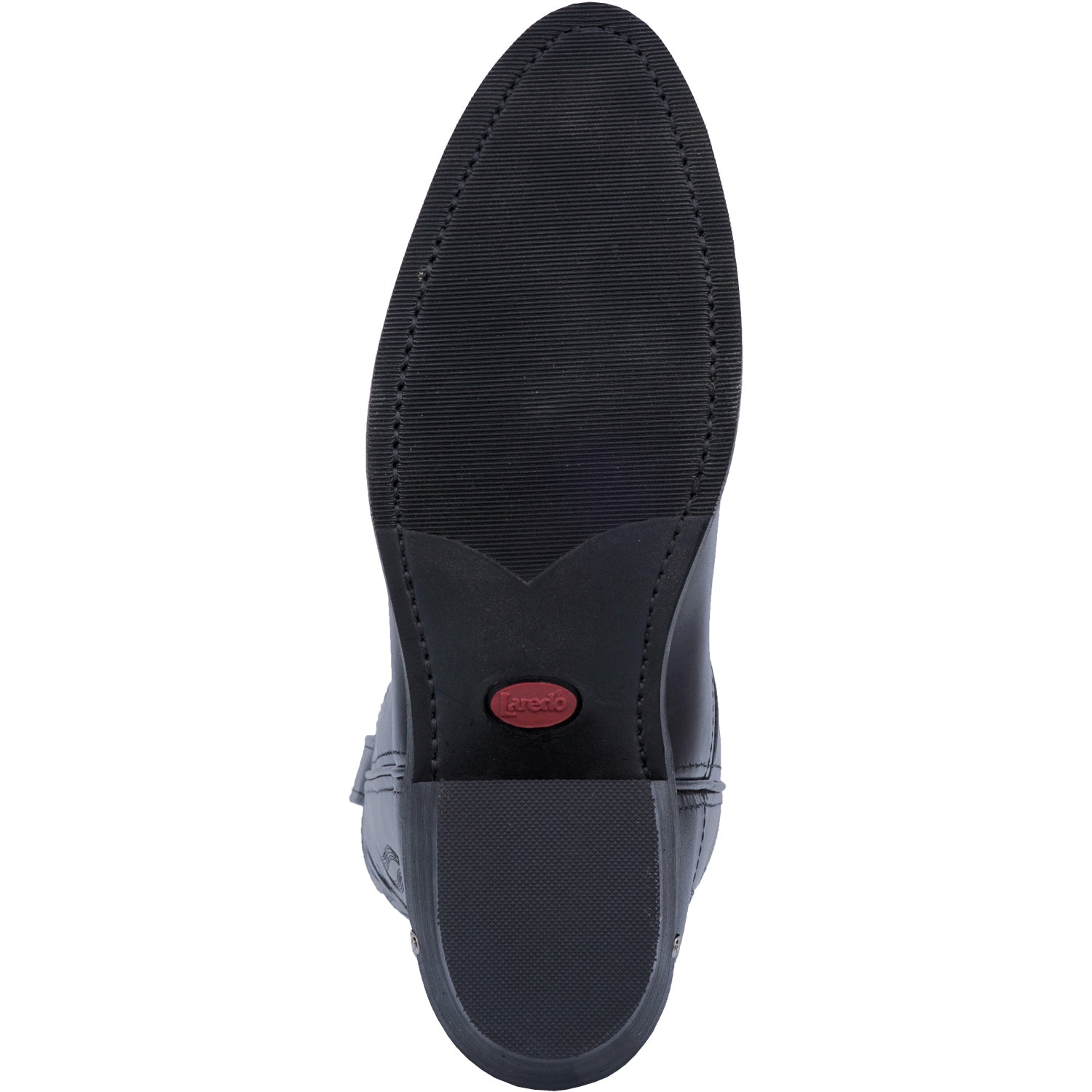 • Leather These authentic western black leather mens cowboy boots from Laredo feature a leather, fineline outsole, and r toe. Constructed from high quality materials, these boots are made to last. For a traditional western look with style, these boots are the perfect choice.