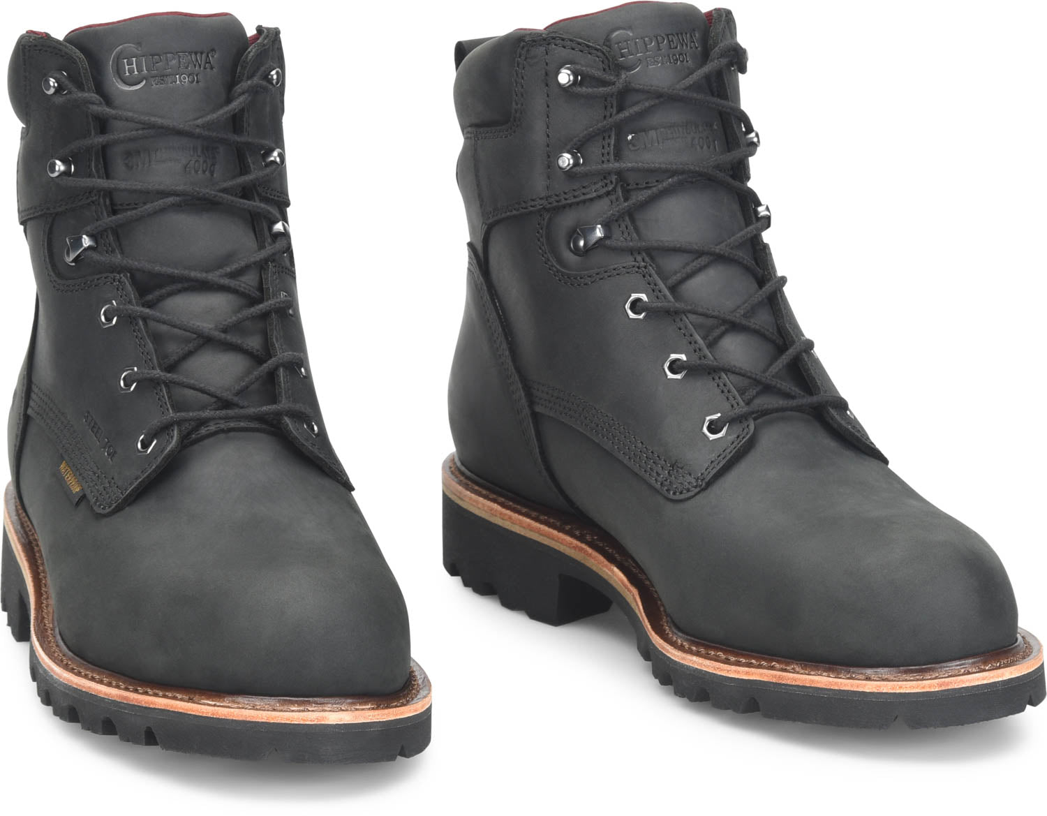 Chippewa Mens Super DNA 6in WP Steel Toe 400G Charcoal Black Leather Work Boots 10.5 E