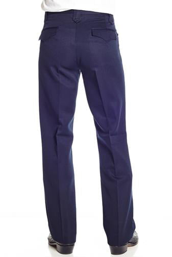 • 100% Polyester This classic, navy polyester mens dress - flat front features flat front and back flap pockets. The premier brand in high quality, traditional western formal wear, Circle S is the label to look for when you want to look your best.