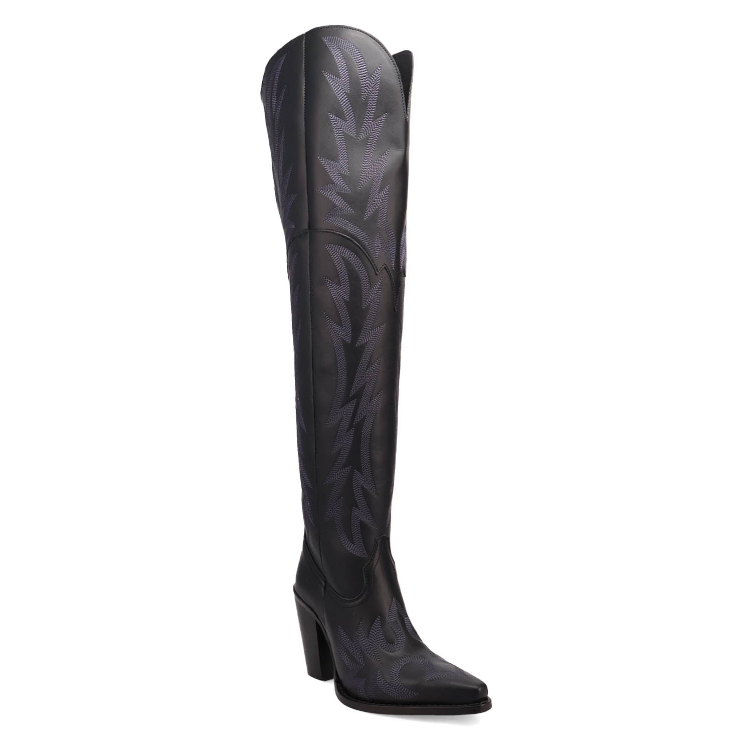 Dingo Womens Diva Black Leather 22in Cowboy Boots 10 M