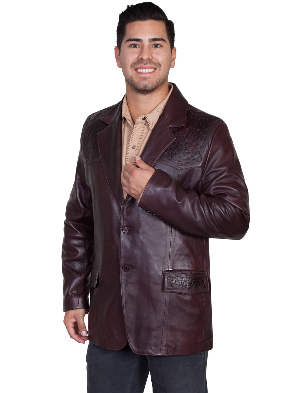 Scully Leather Mens Black Cherry Lambskin Ostrich Trim Western Blazer – The Western Company