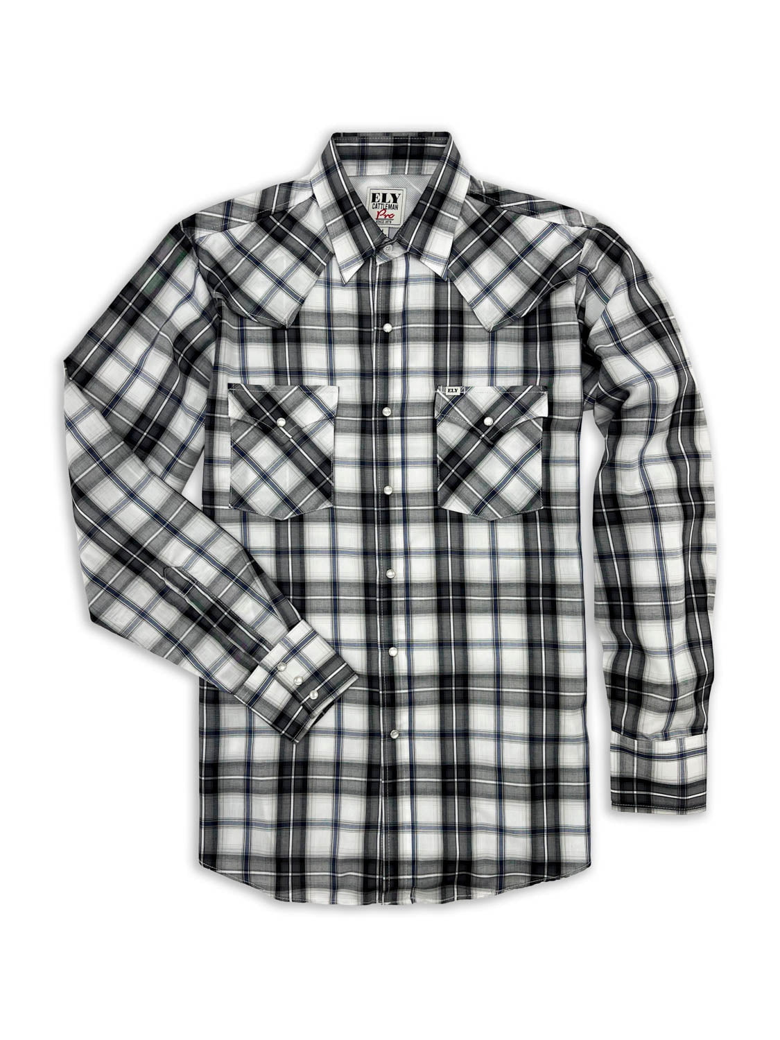 Ely and Walker Mens Pro Vented Plaid Black/White Poly/Cotton L/S Shirt – The Western Company