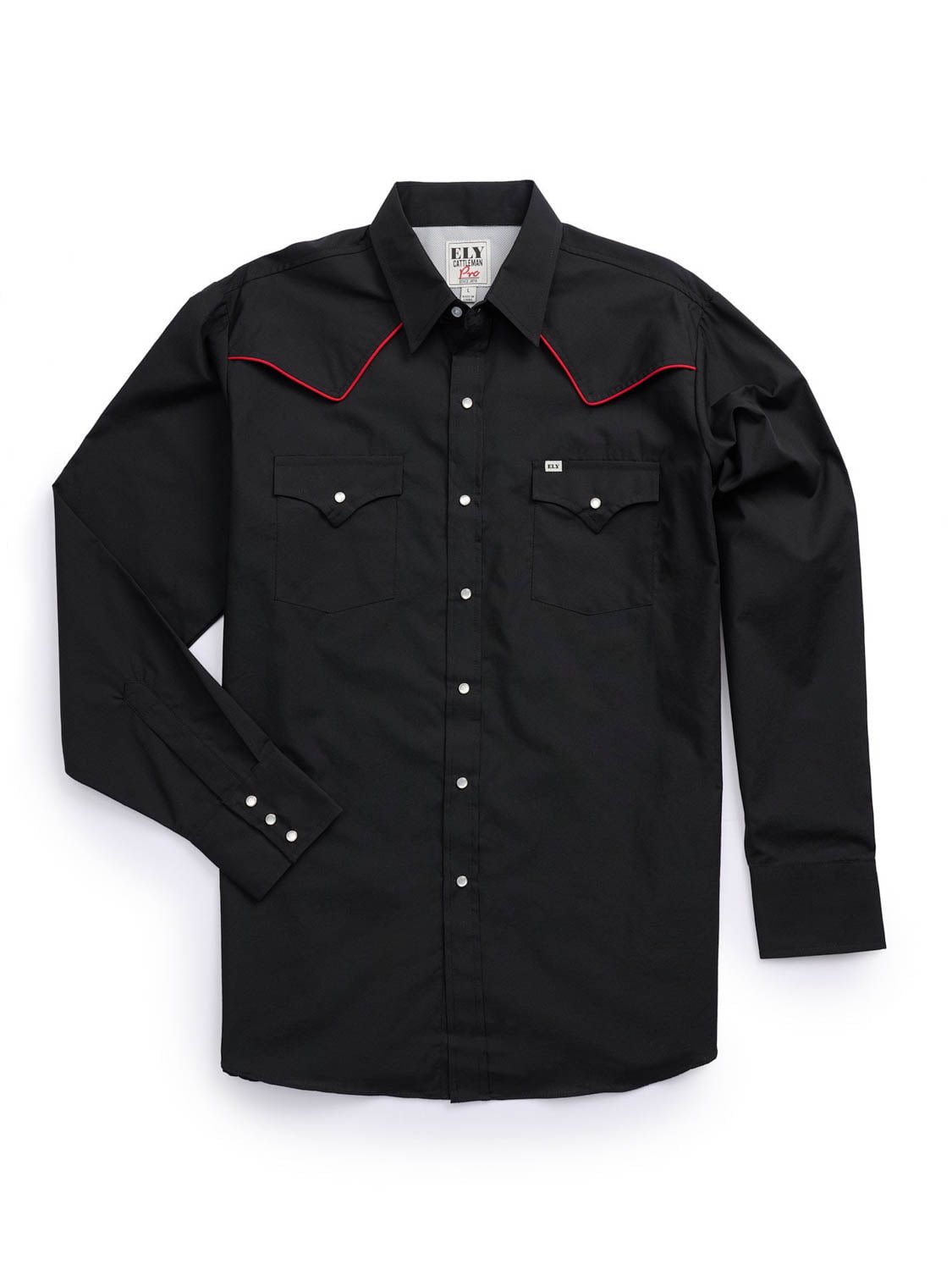 Ely and Walker Mens Pro Western Vented Piping Black Poly/Cotton L/S Shirt
