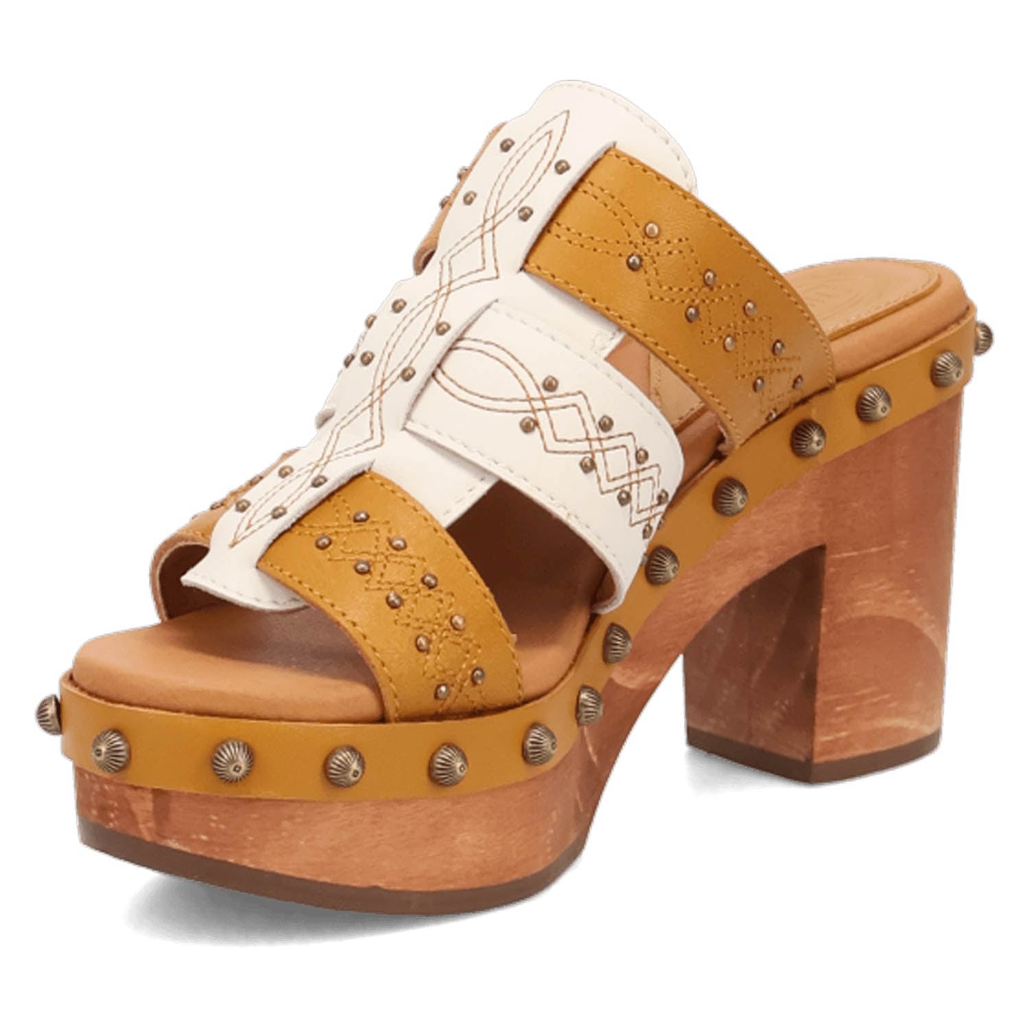 Dingo Womens Chateau Wooden Plantain Leather Stud Sandals Shoes