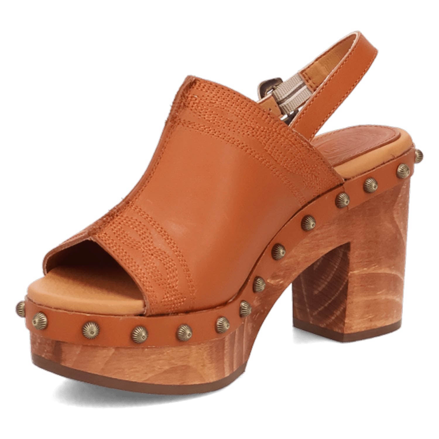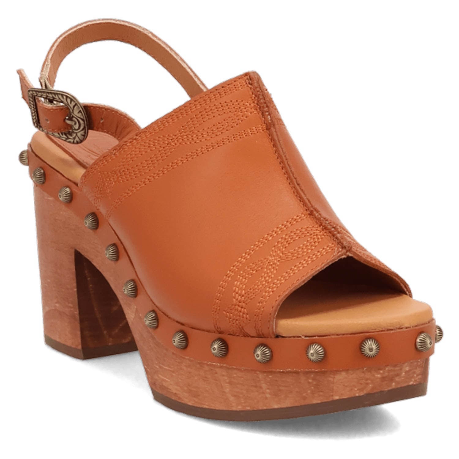 Dingo Womens Clover Wooden Russet Leather Stud Sandals Shoes