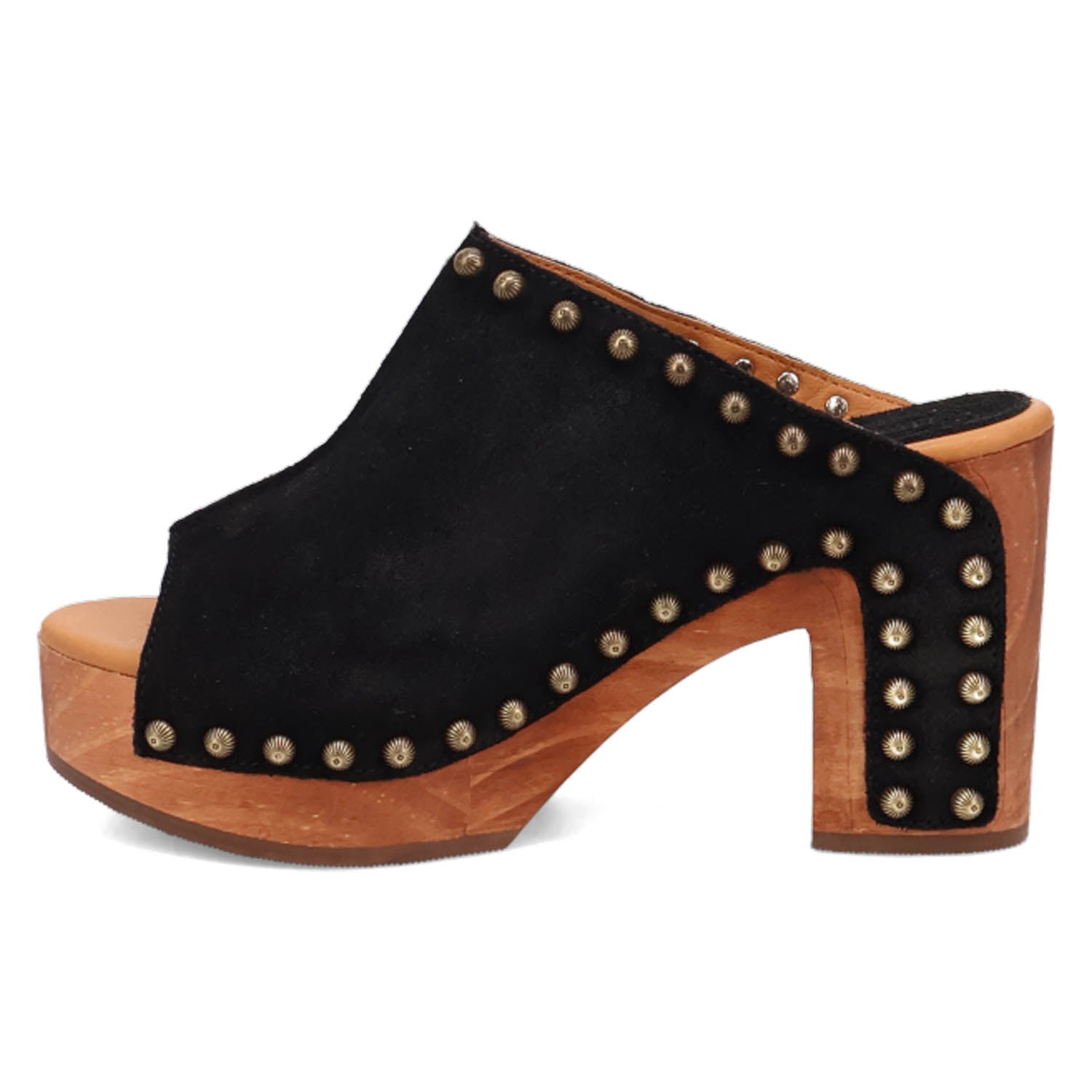 Dingo Womens Echo Wooden Black Leather Stud Sandals Shoes