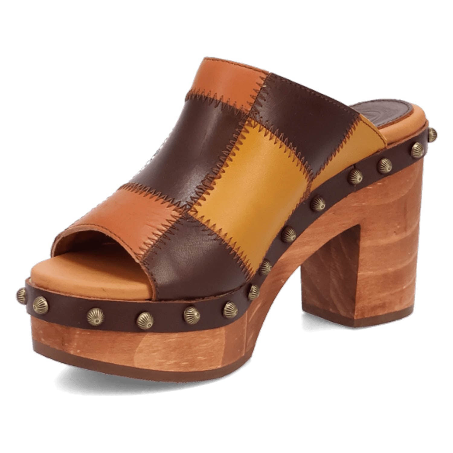 Dingo Womens Mosaic Wooden Multi-Color Leather Stud Sandals Shoes