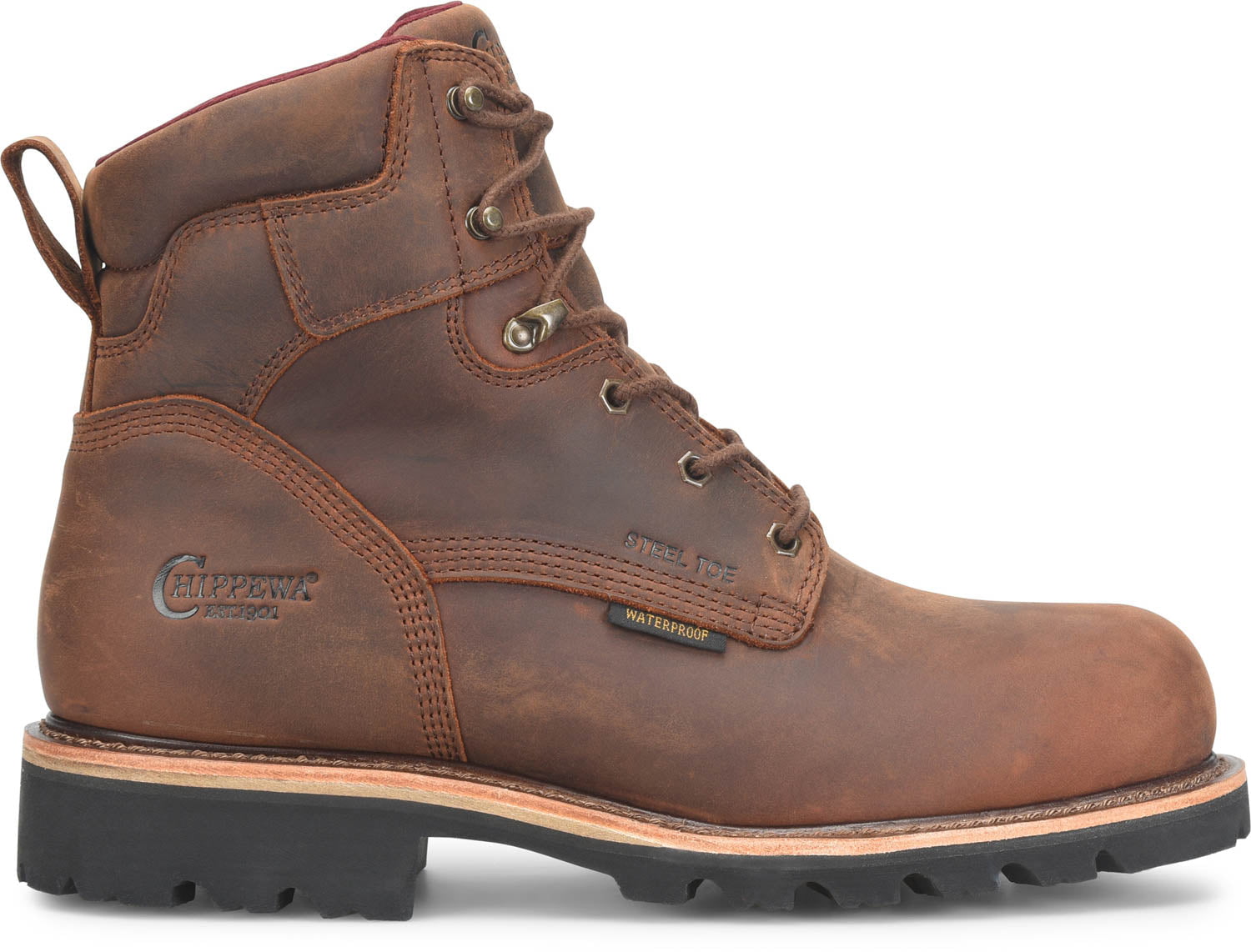 Chippewa Mens Super DNA 6in WP Steel Toe Walnut Leather Work Boots – The Western Company
