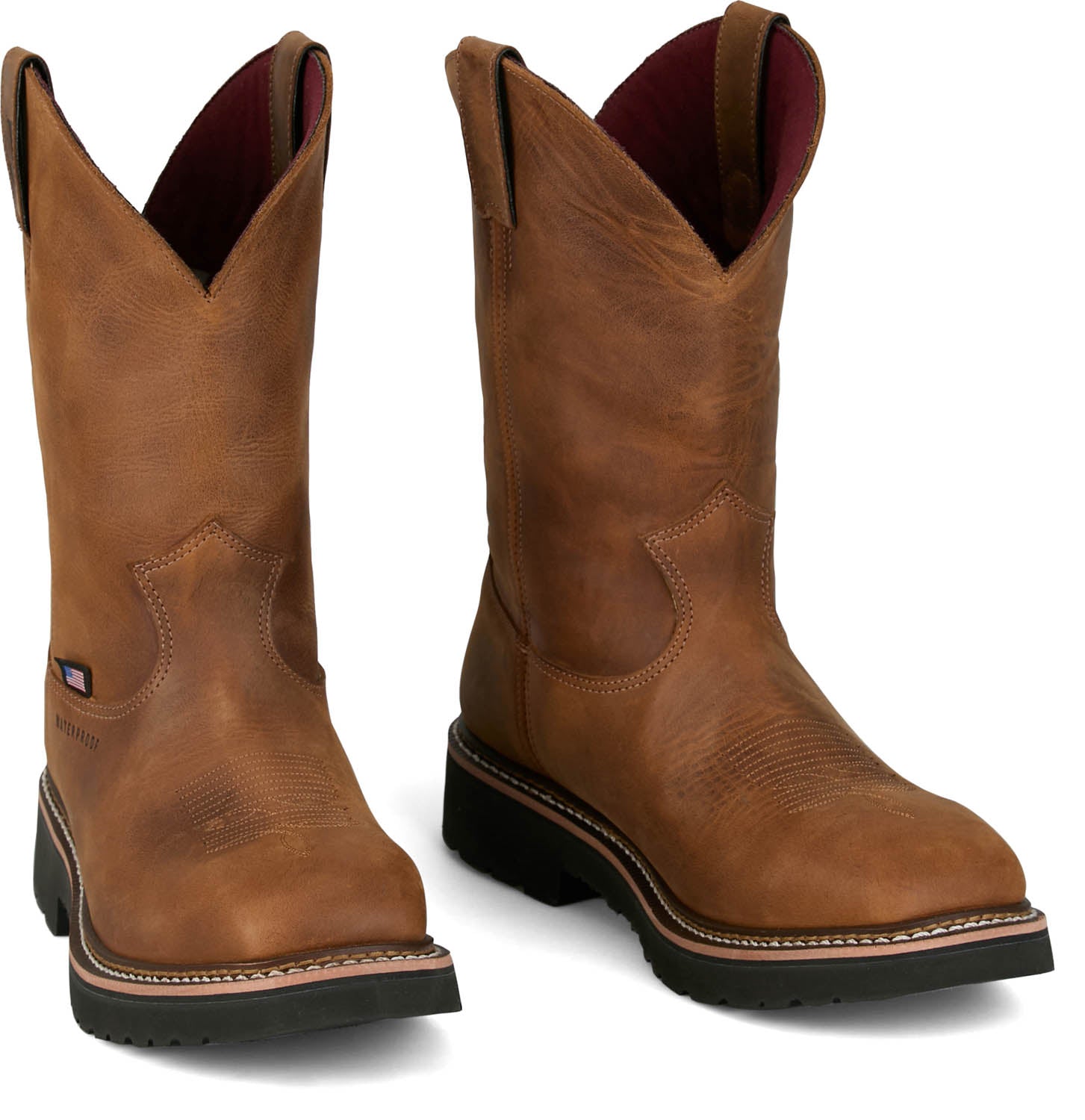 Justin Mens Ames 11in ST WP Walnut Cowhide Work Boots
