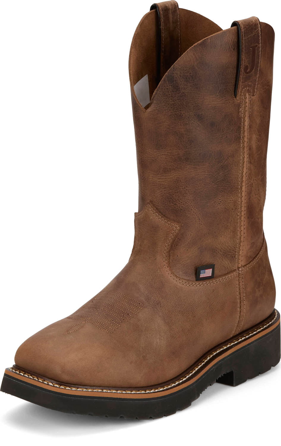 Justin Mens Ames 11in Walnut Leather Work Boots – The Western Company