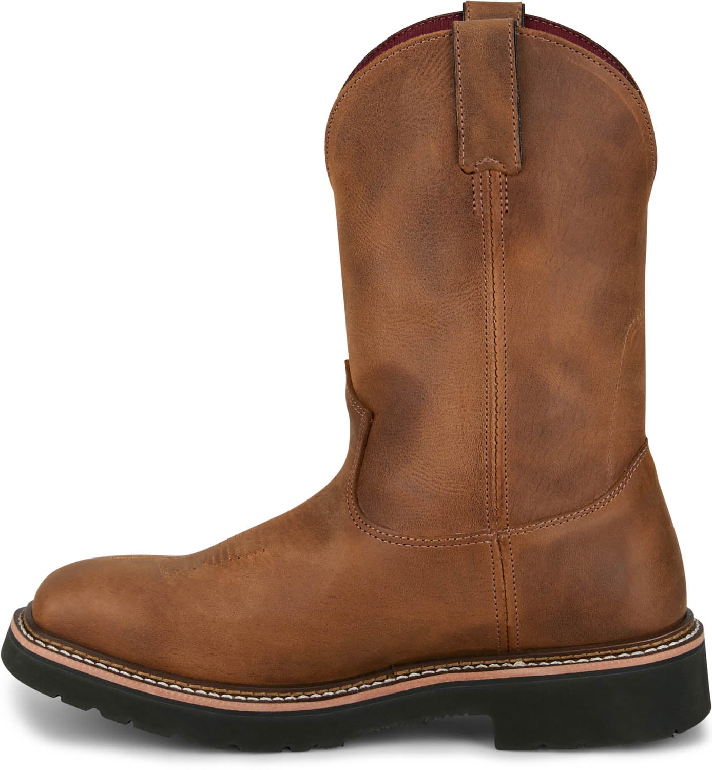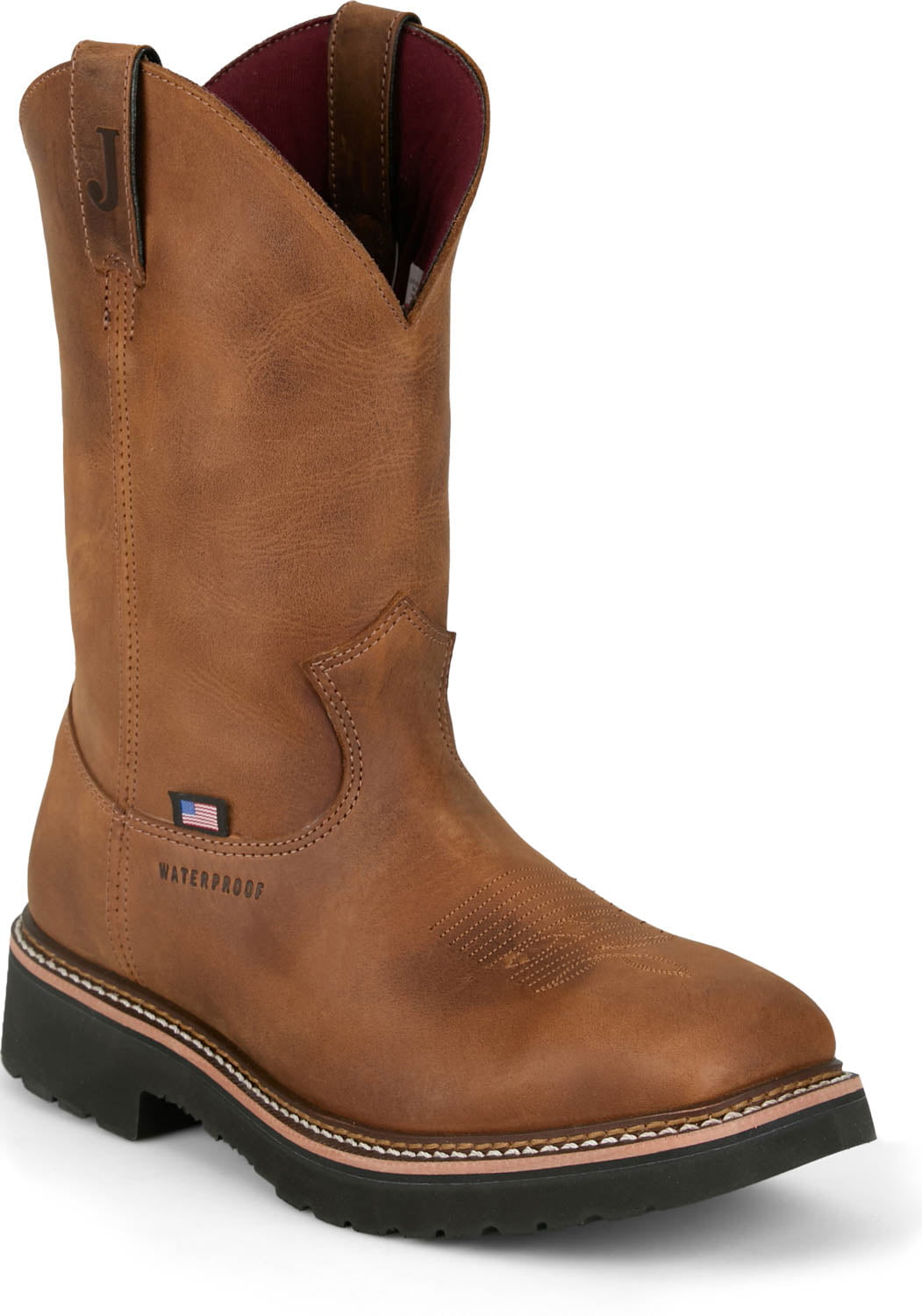 Justin Mens Ames 11in Waterproof Walnut Leather Work Boots
