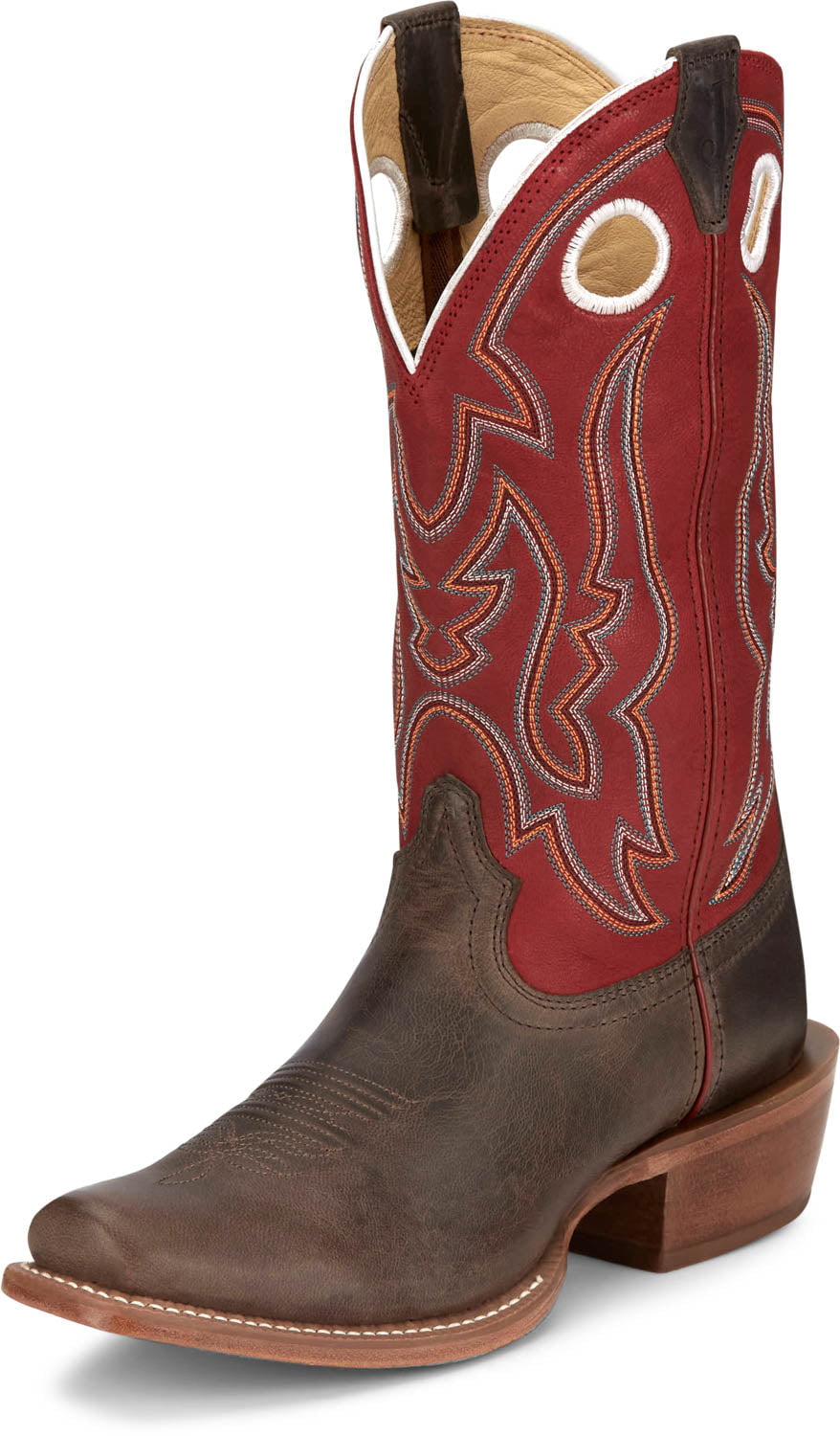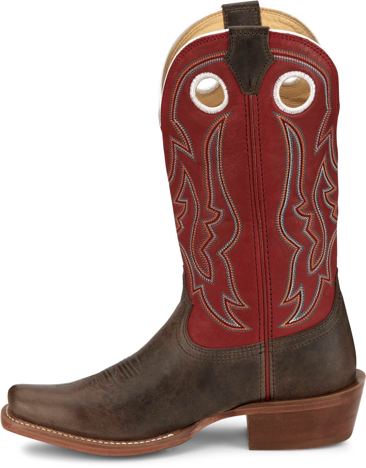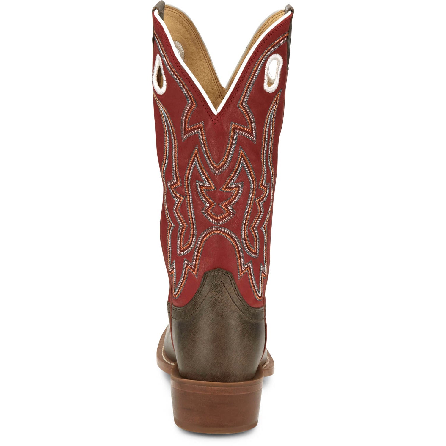 Justin Mens Ante Up 13in Western Hickory/Red Leather Frontier Cowboy Boots