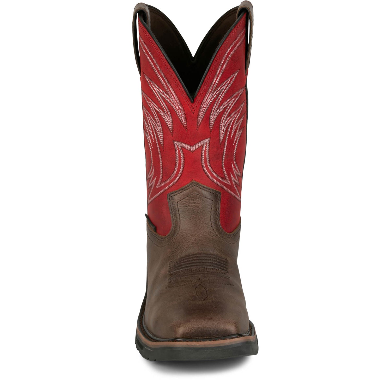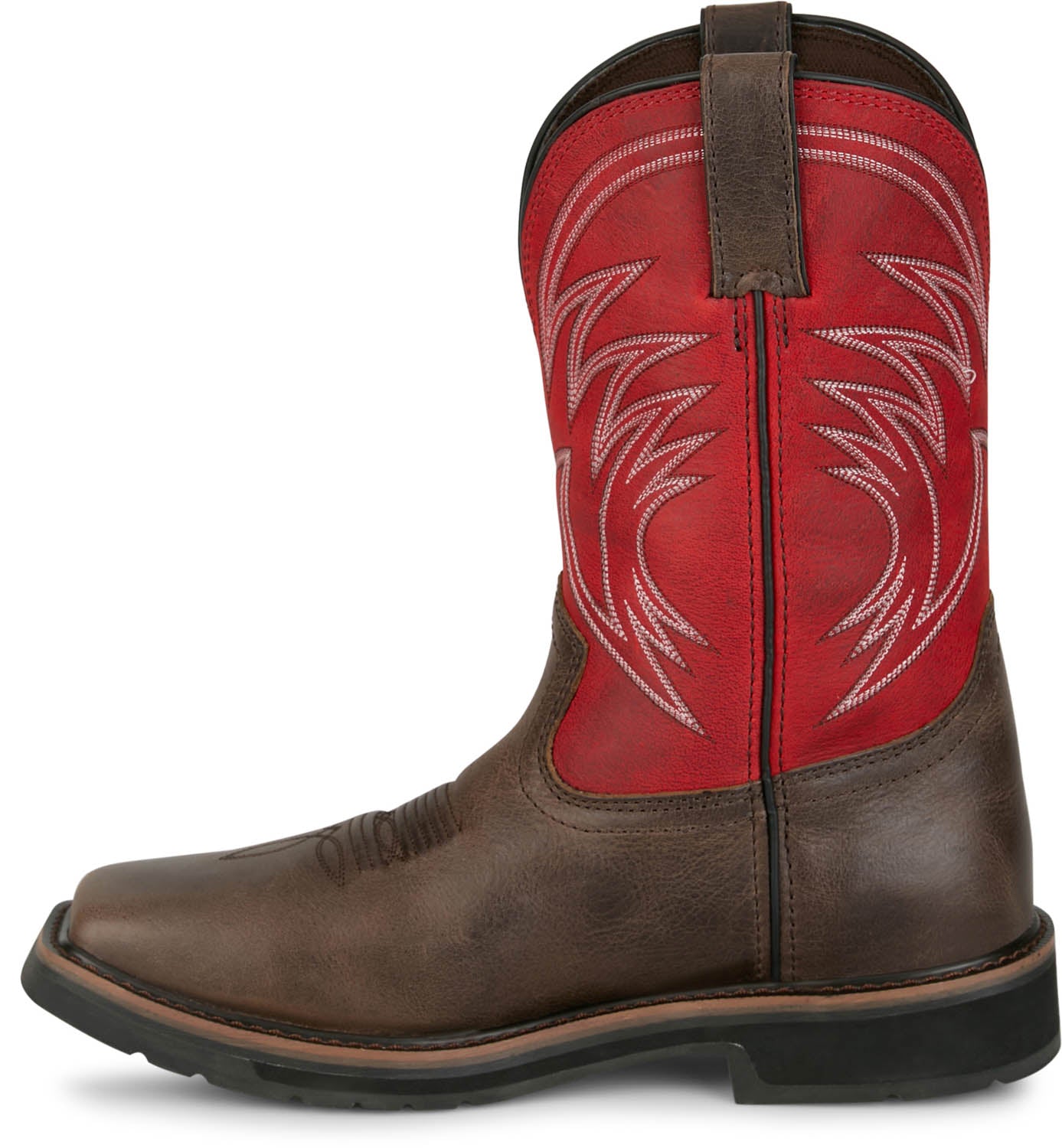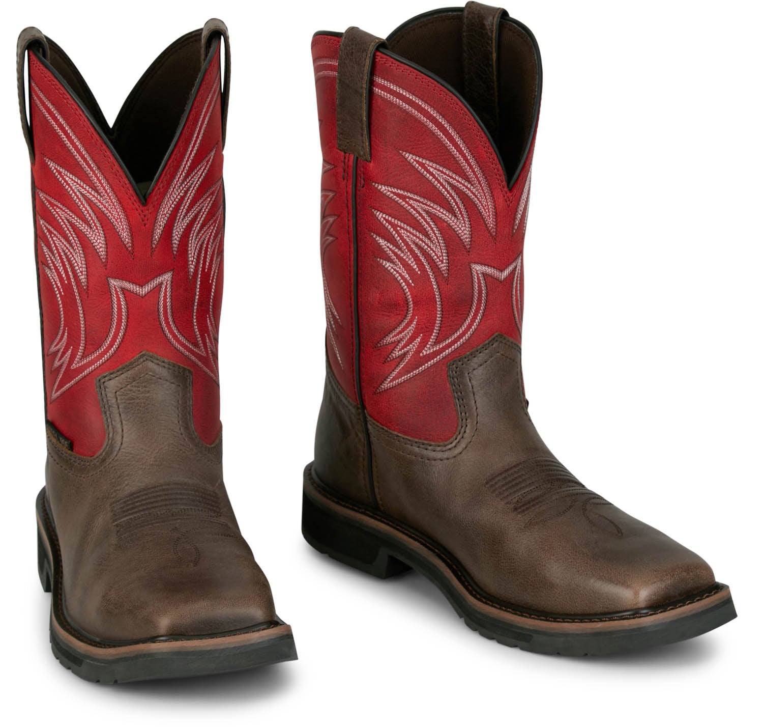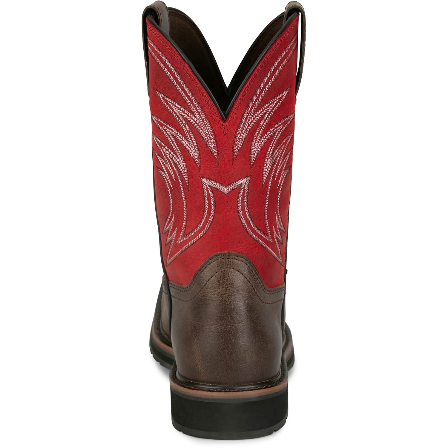 Justin Mens Apprentice 11in Steel Toe Coffee/Red Water Buffalo Work Boots