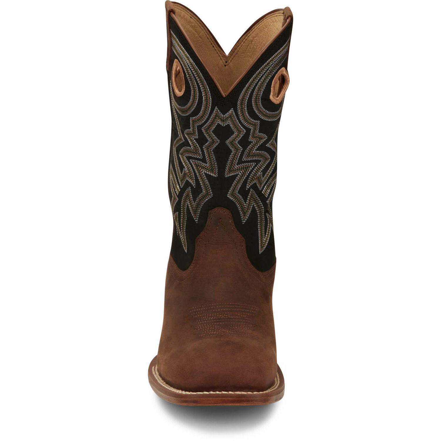 Justin Mens Big News 11in Western Walnut Leather Frontier Cowboy Boots