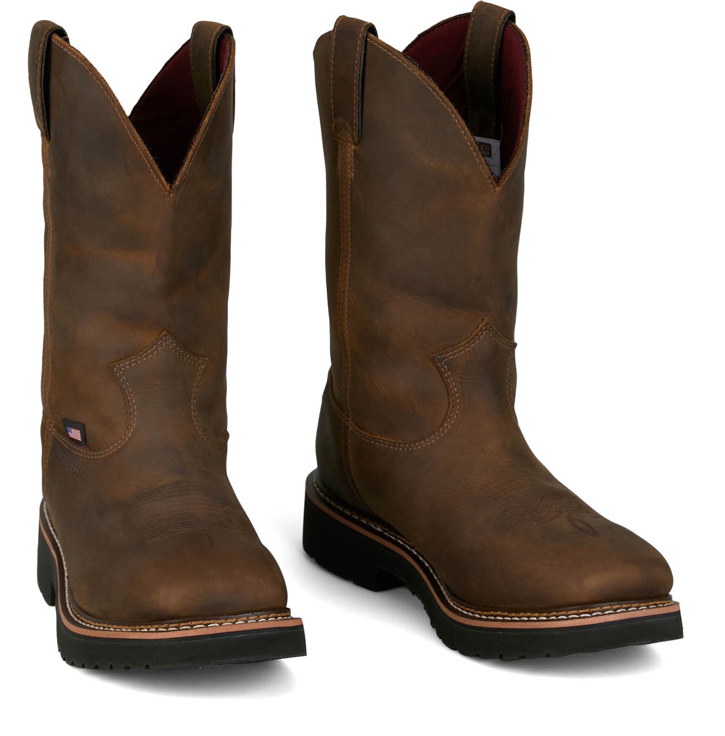 Justin Mens Billings 11in Waterproof Hickory Cowhide Work Boots