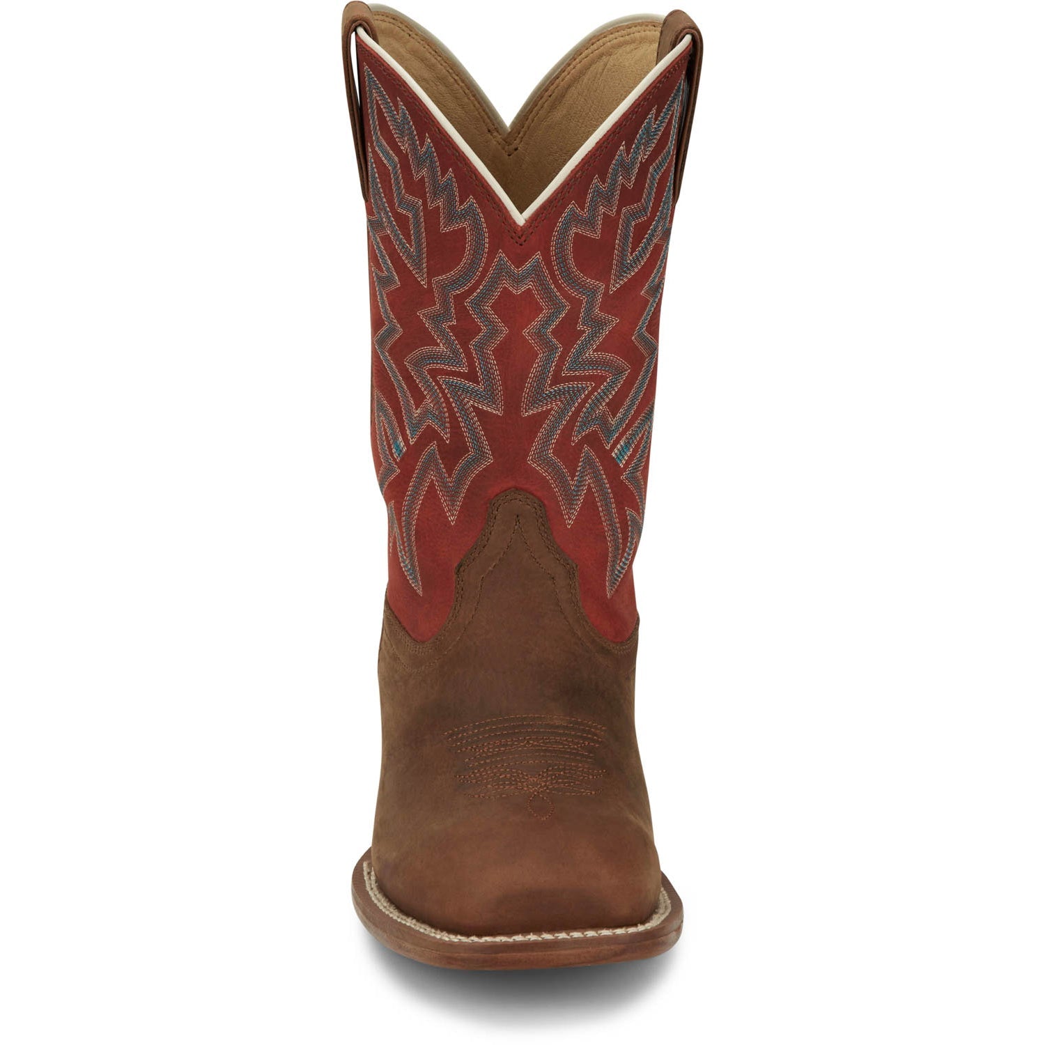 Justin Mens Jackpot 11in Western Pecan Leather Frontier Cowboy Boots