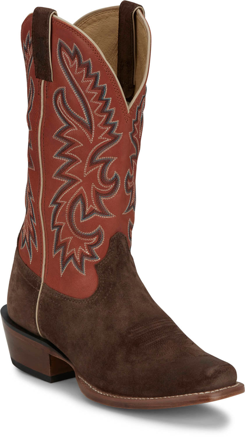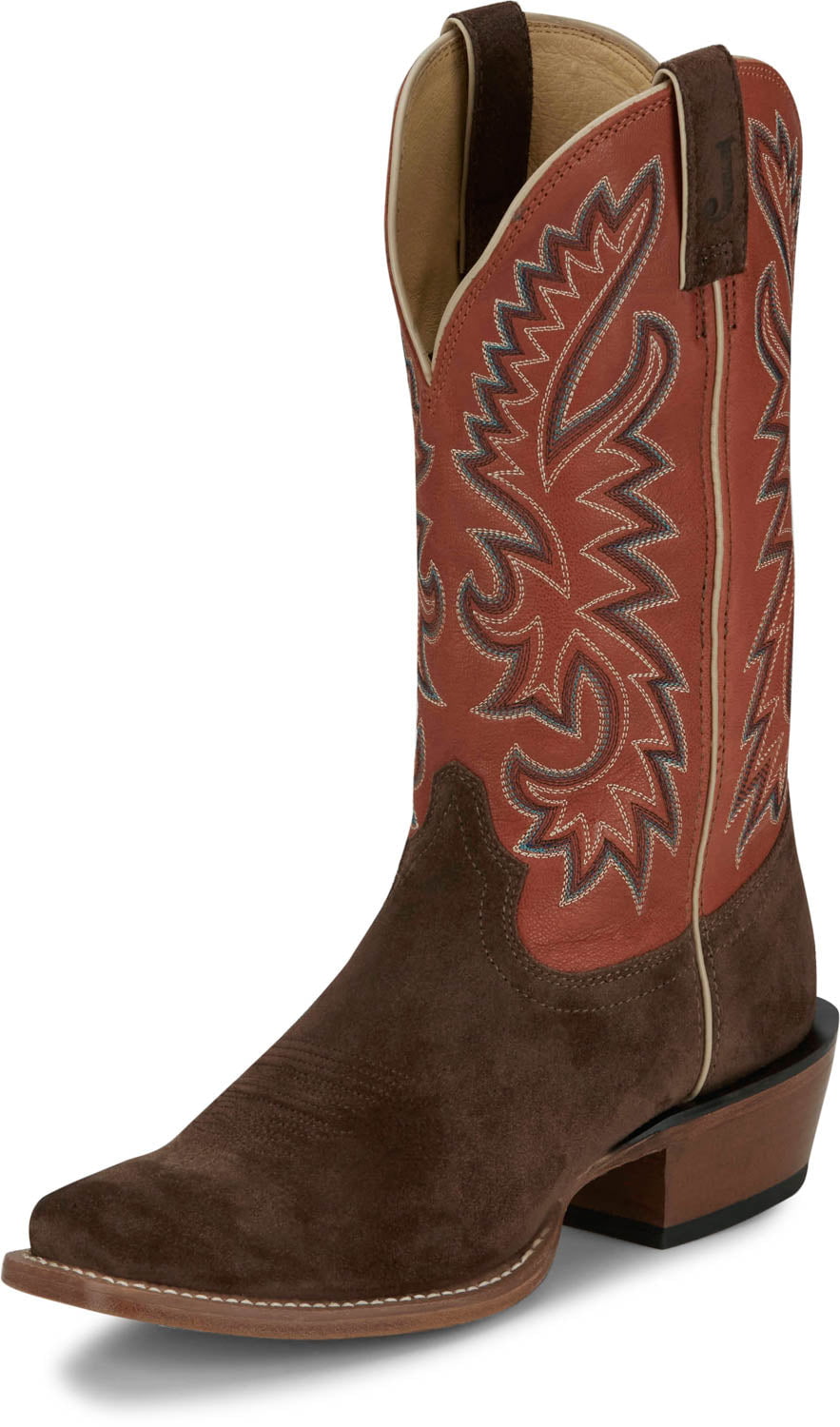 Justin Mens Jimmy 13in Western Russett/Red Leather Frontier Cowboy Boots