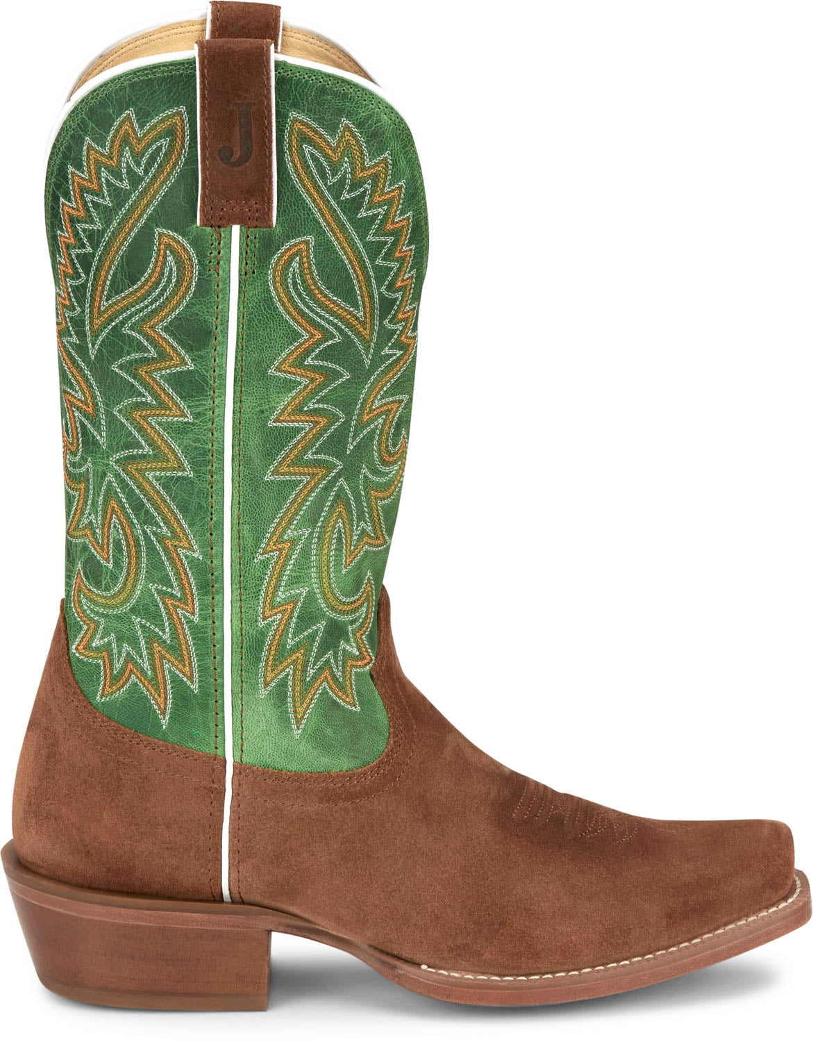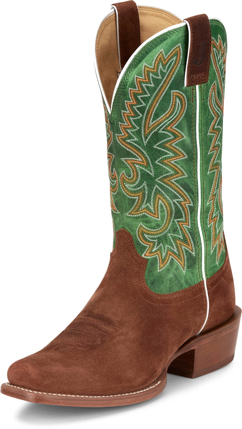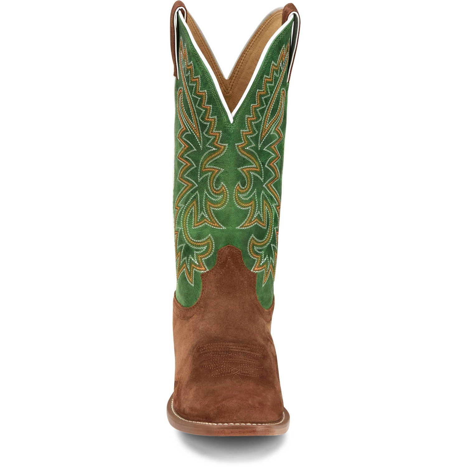 Justin Mens Jimmy 13in Western Sedona/Green Leather Frontier Cowboy Boots