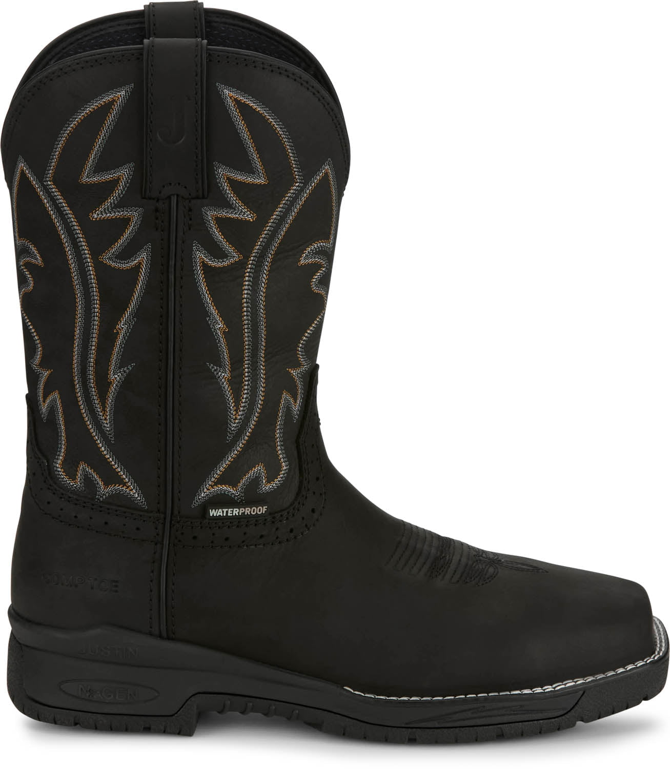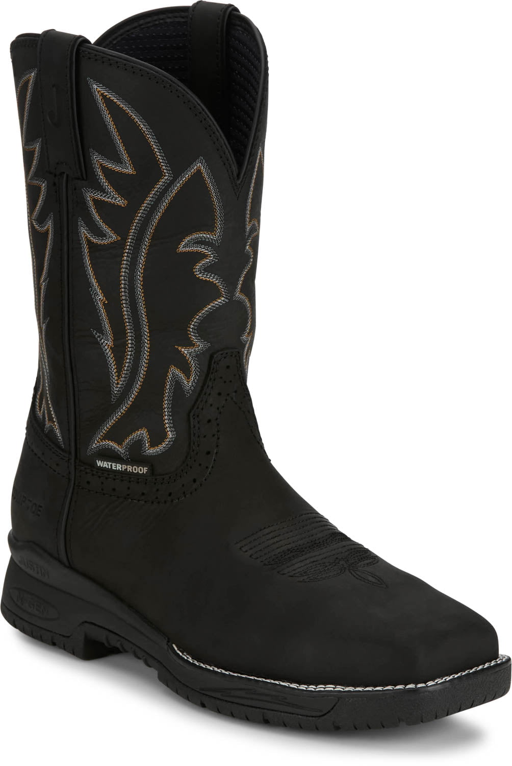 Justin Mens Nitread 11in WP CT Black Leather Work Boots
