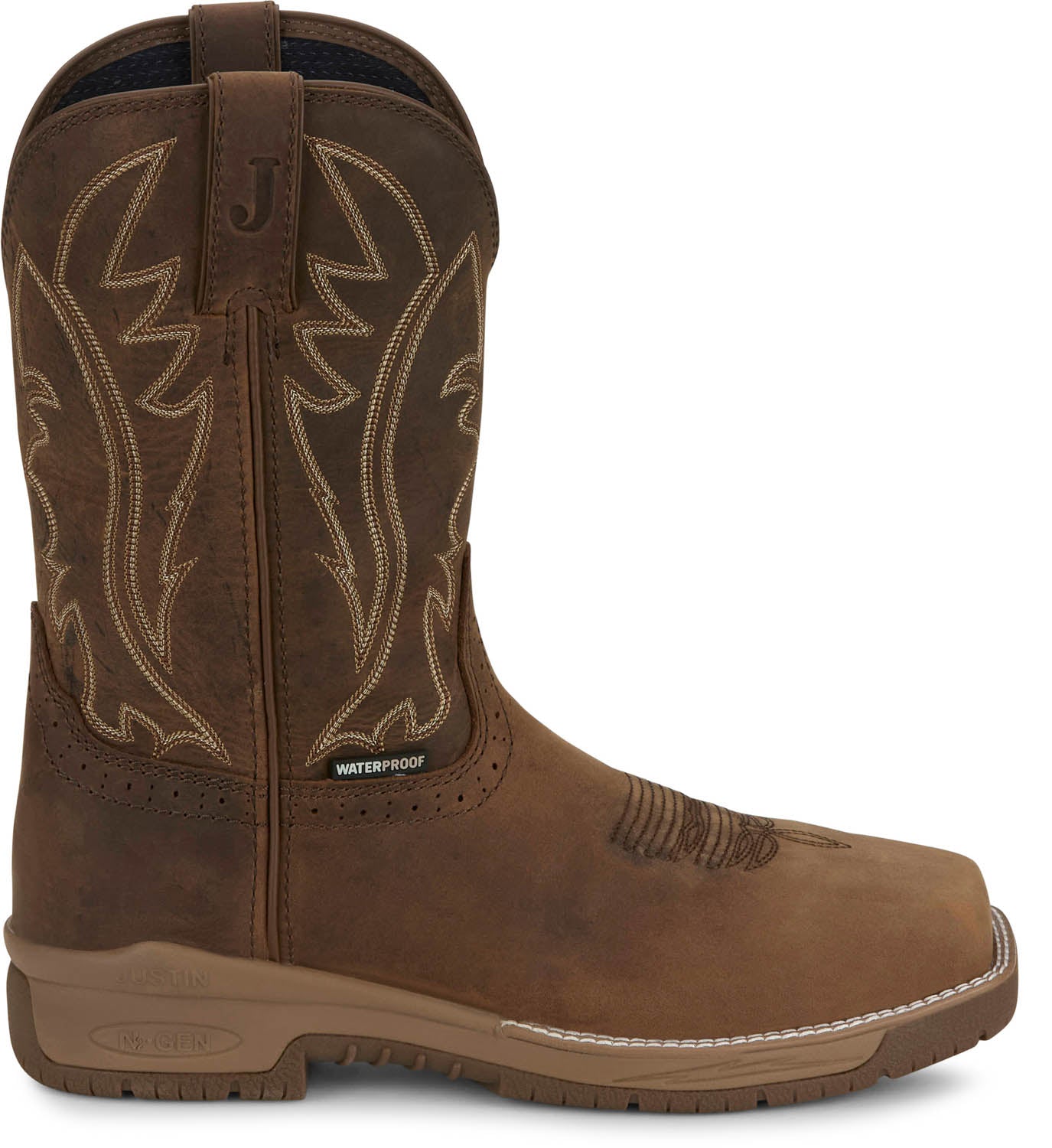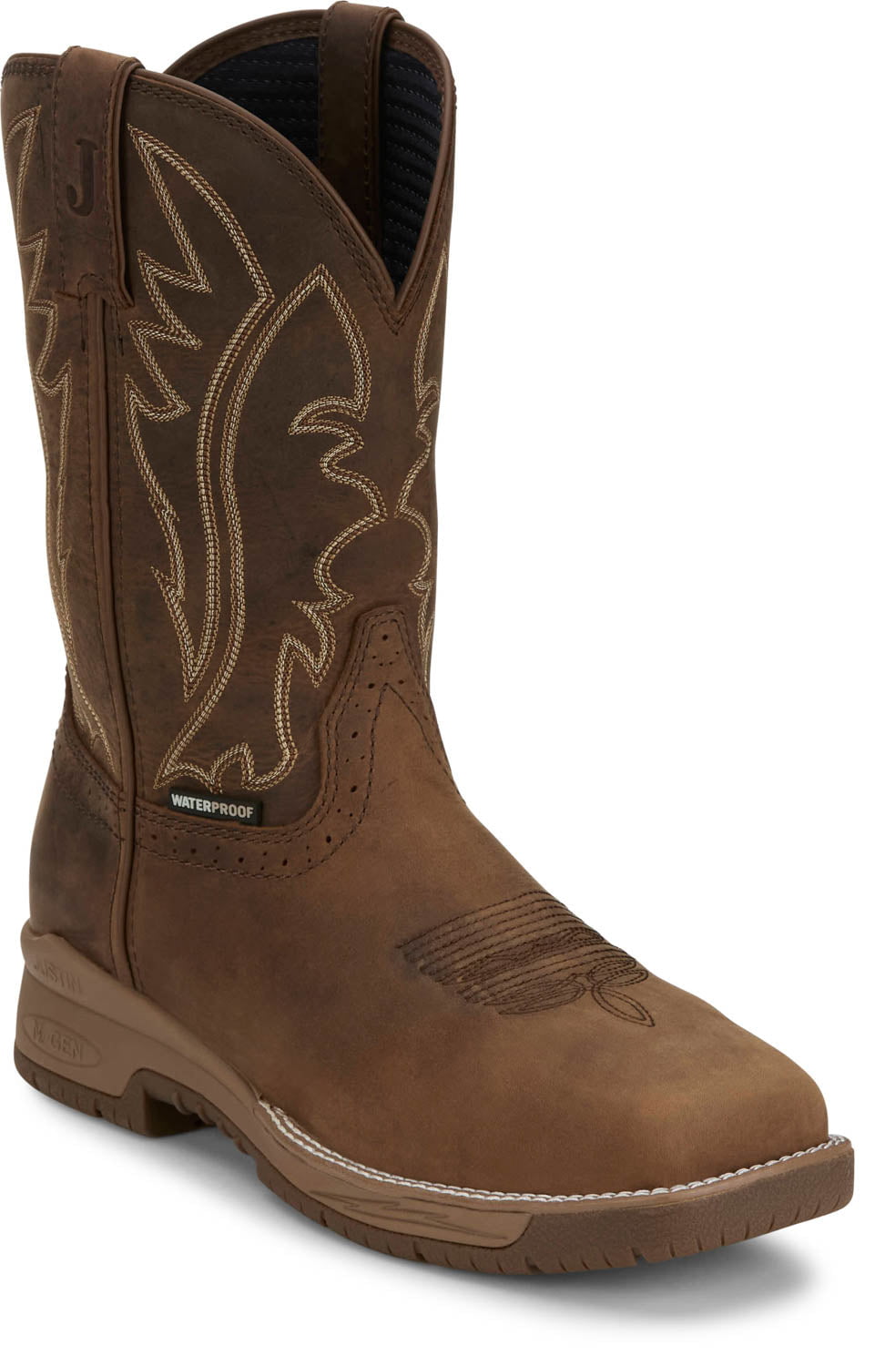 Justin Mens Nitread 11in WP Taupe Leather Work Boots