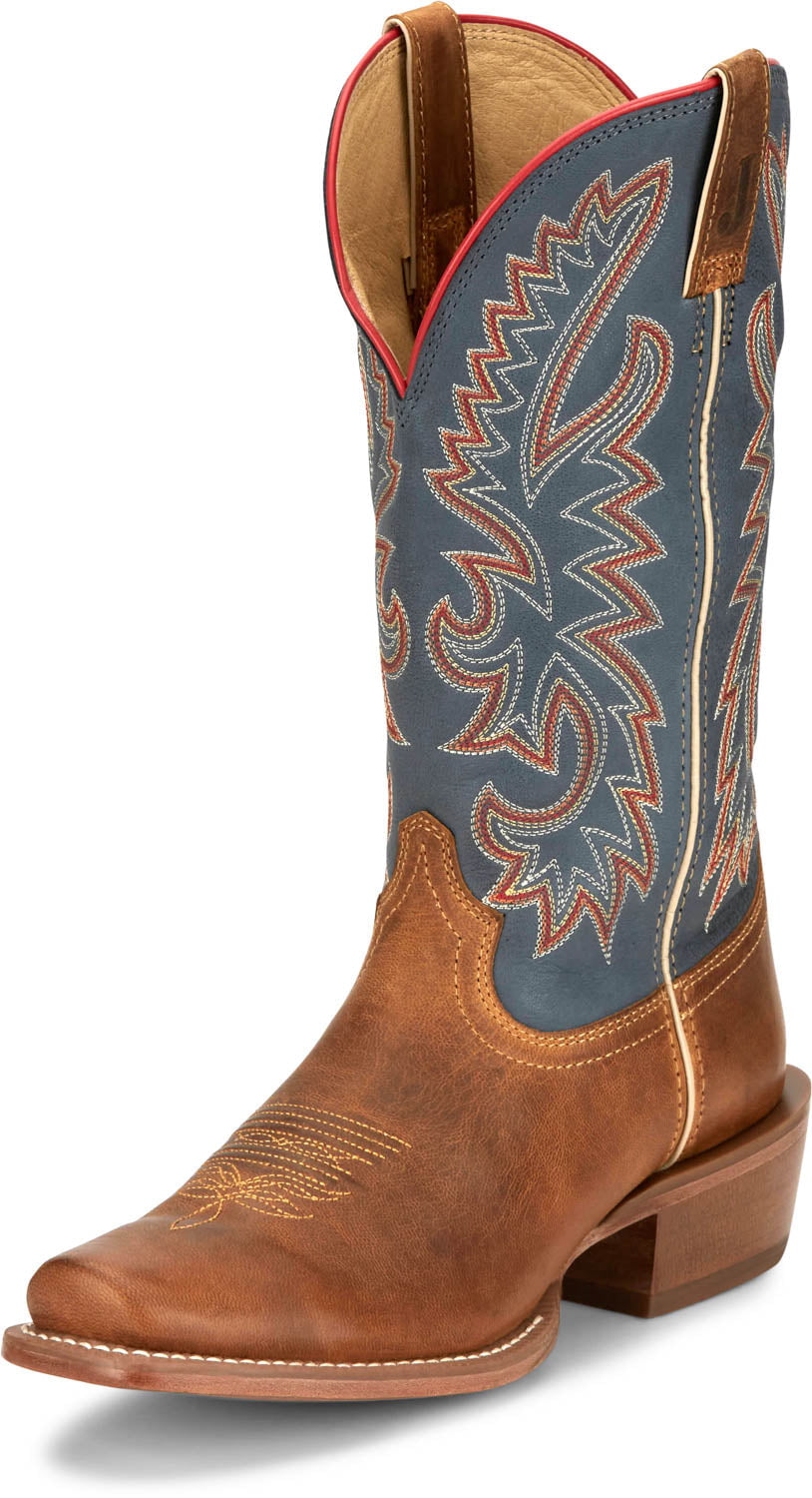 Justin Mens Show Off 13in Western Blue/Oily Tan Leather Frontier Cowbo – The Western Company