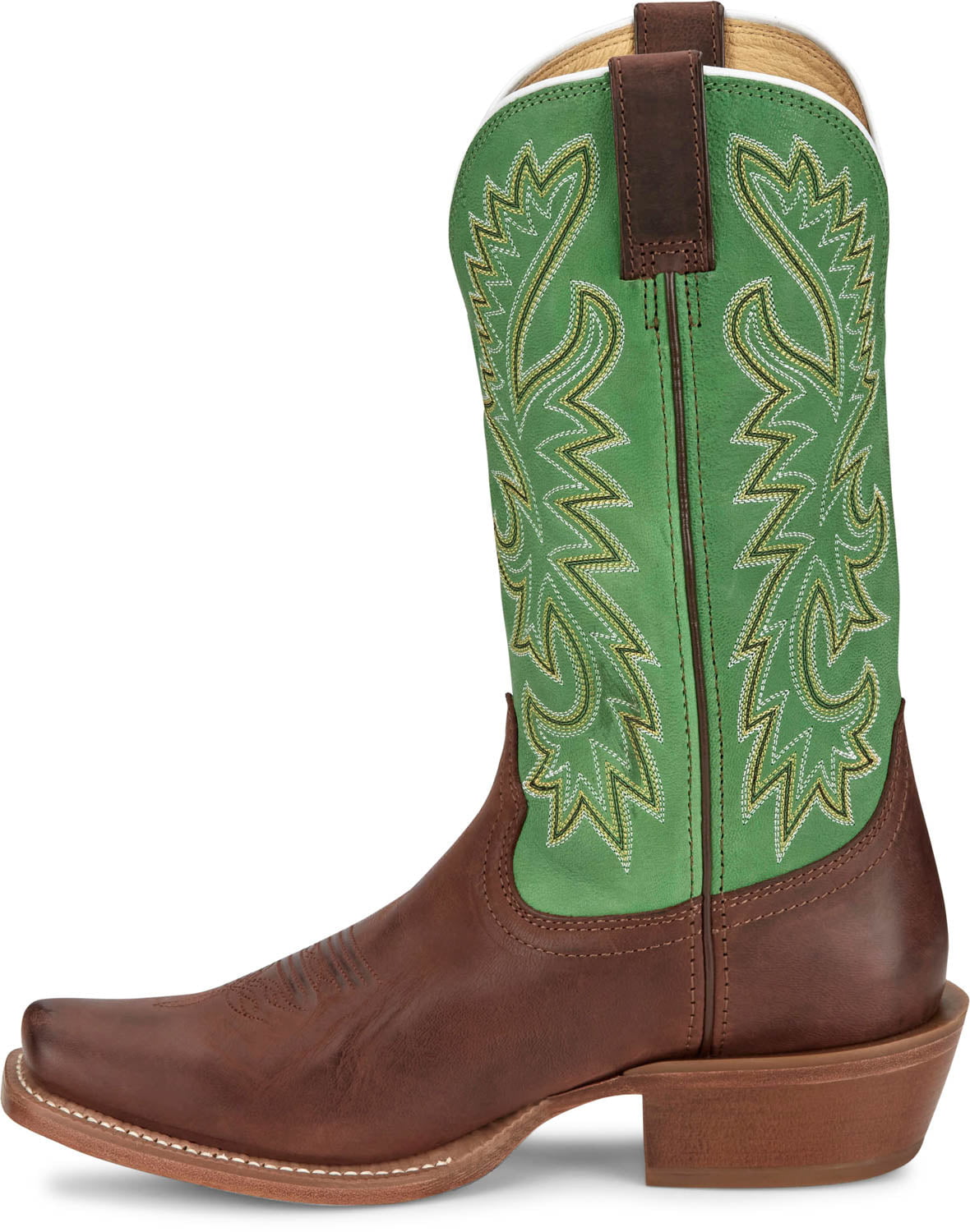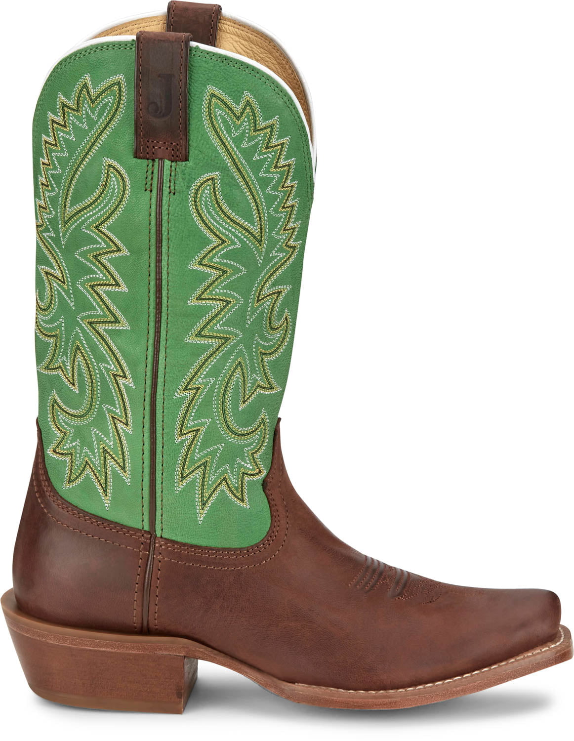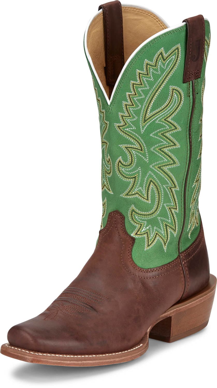 Justin Mens Show Off 13in Western Green/Bay Leather Frontier Cowboy Boots
