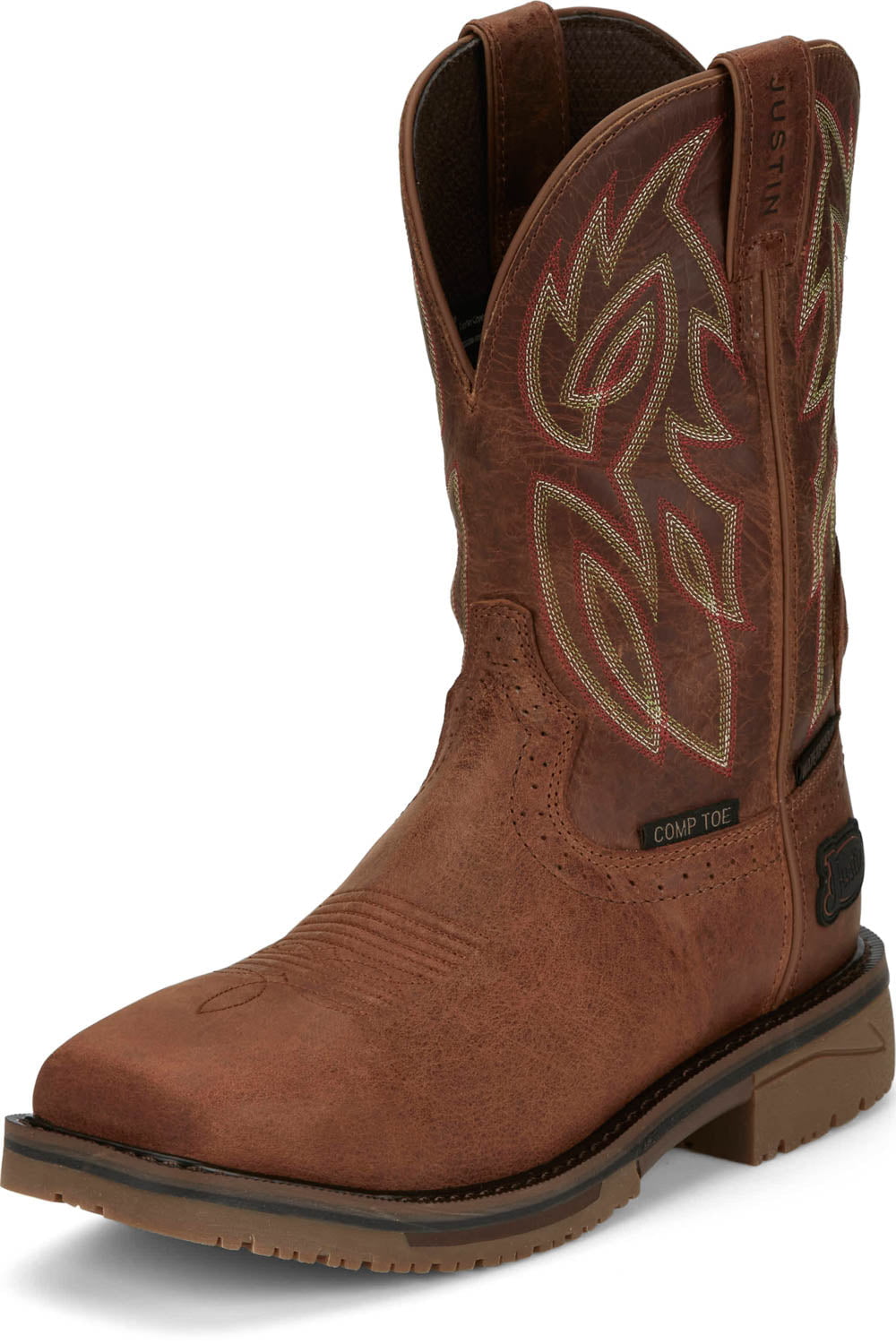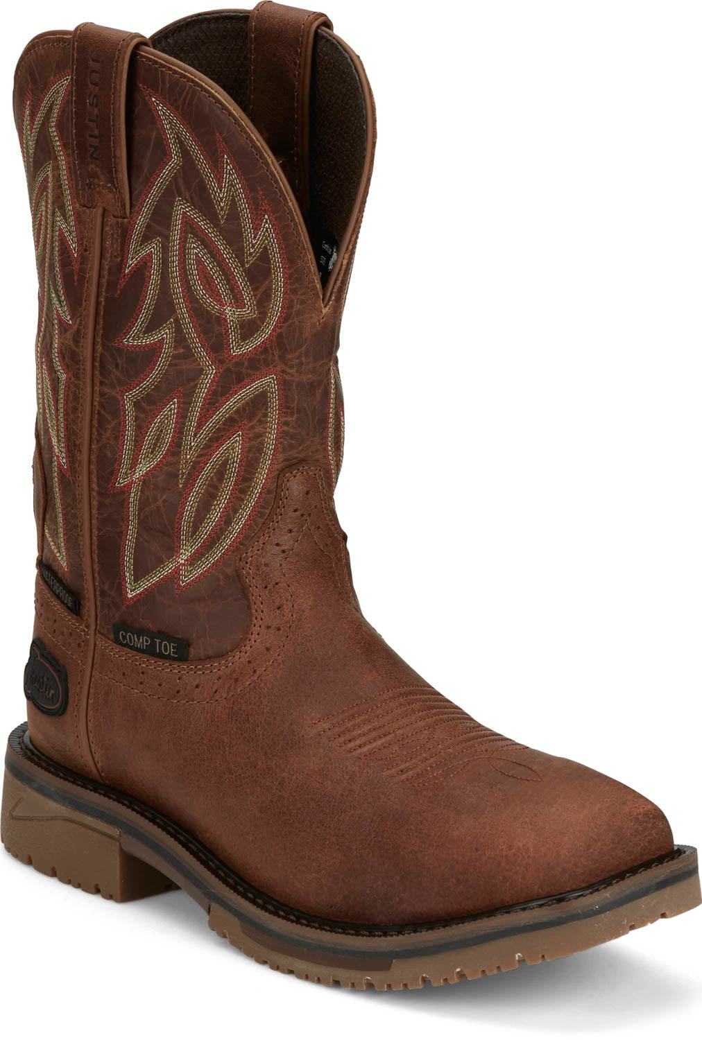 Justin Mens Wolfe 11in WP Comp Toe Russett Leather Work Boots