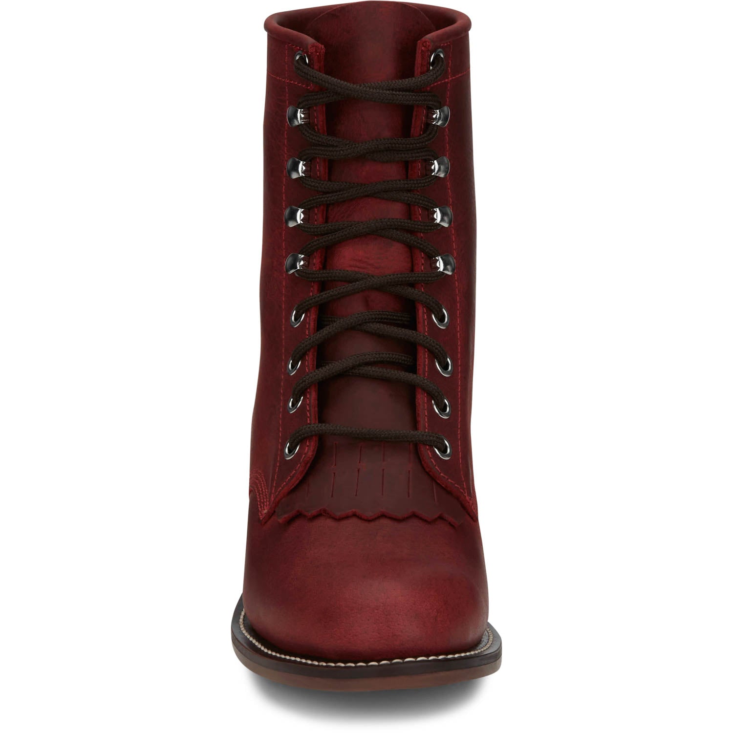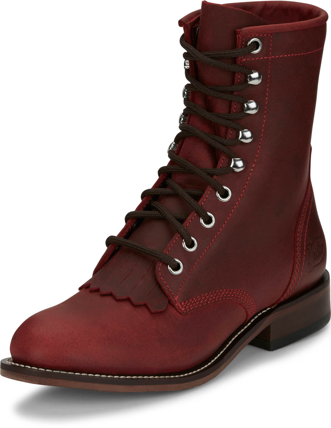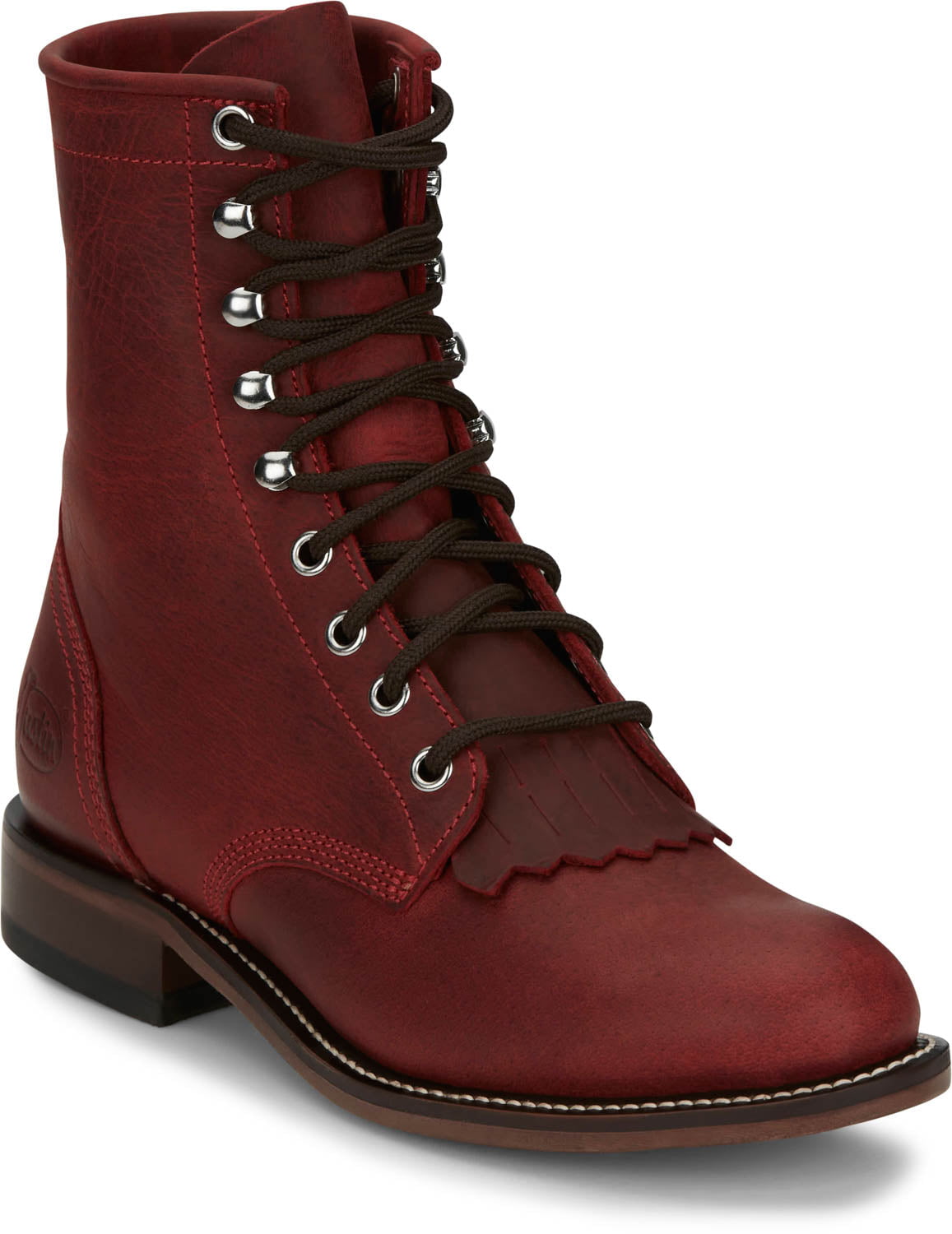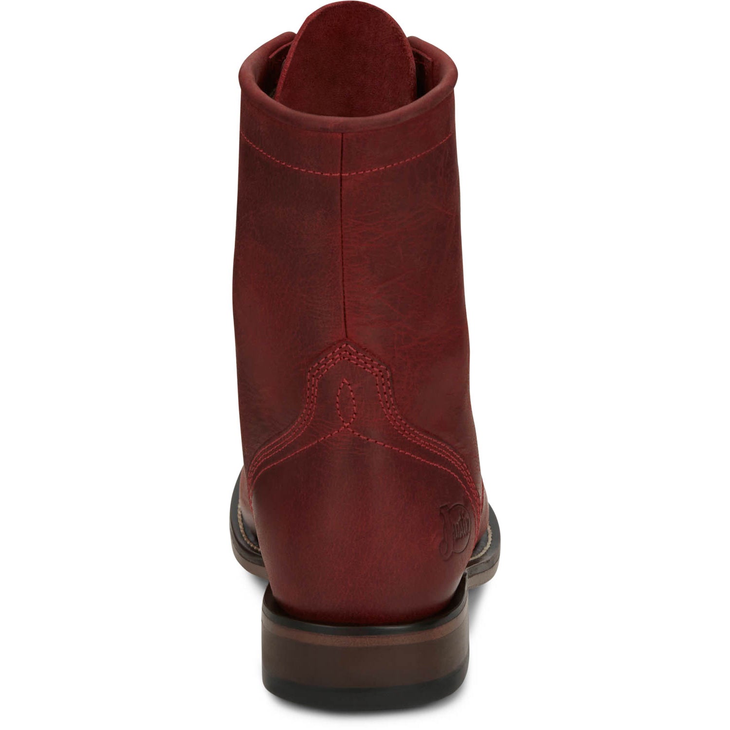 Justin Mens McKean 7in Lace-Up Roper Red Leather Work Boots 9 B