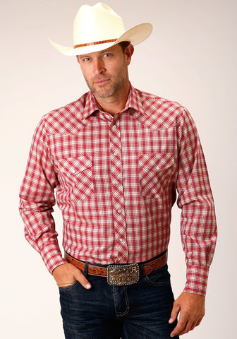 Roper Mens 55/45 Small Scale Red Multi Cotton Blend L/S Shirt