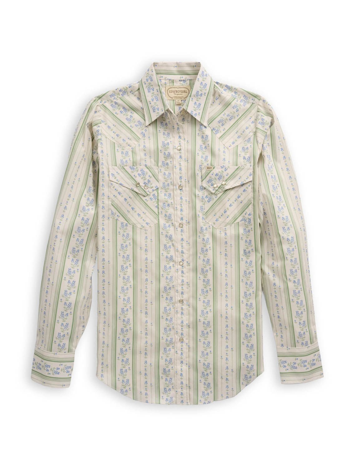 Ely and Walker Womens Granddaddy Bluebonnet Stripe Ecru 100% Cotton L/S Shirt