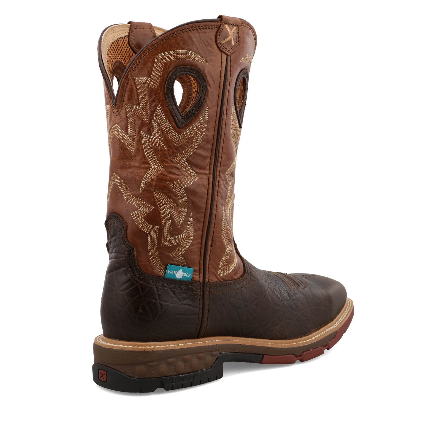 Twisted X Mens 12in Western WP AT Smokey Chocolate/Spice Leather Work Boots