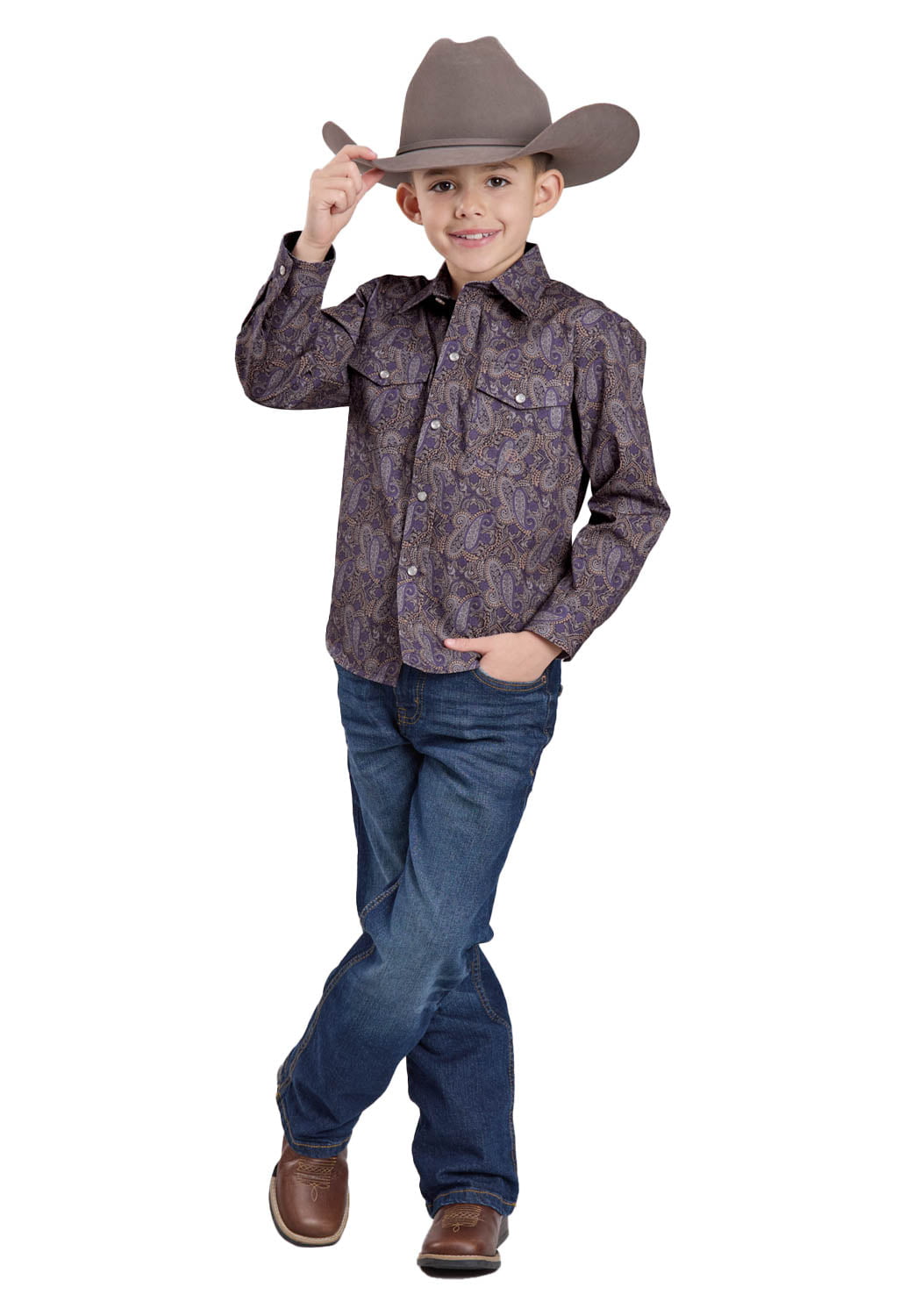Roper Kids Boys Haze Paisley Purple 100% Cotton L/S Shirt